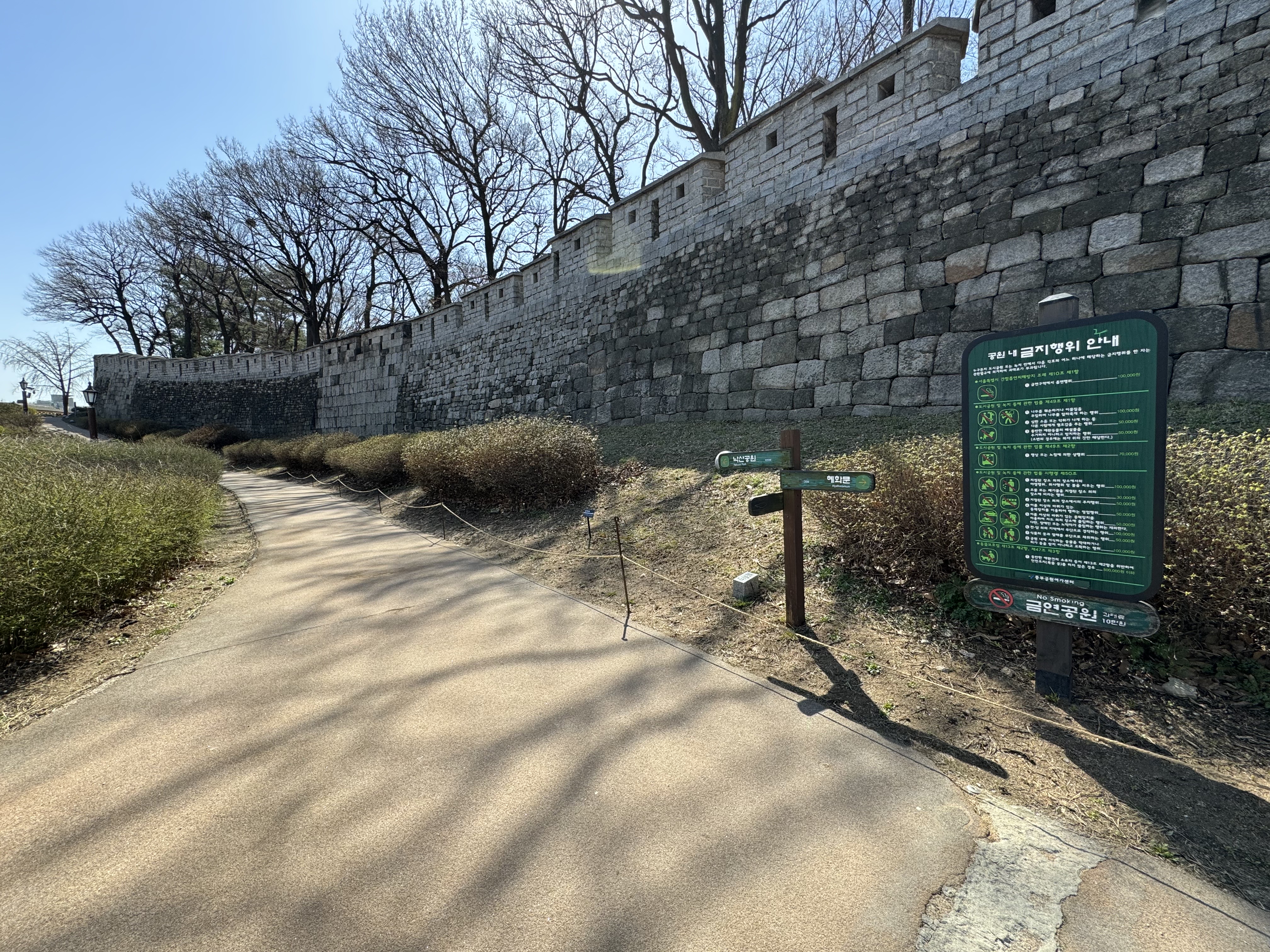 한양도성 순성길 2코스 (낙산 구간) 은 위에도 사진으로 올려놨던 오르막을 제외하면 완만한 평지길이 이어진 다음에 계속 내려가기만 하니까 크게 부담이 없었다. 그래서 이 정도면 오늘 완전 여유있게 마치는 거 아니야~? 하고 이 때까지만 해도 생각을 했더랬다.