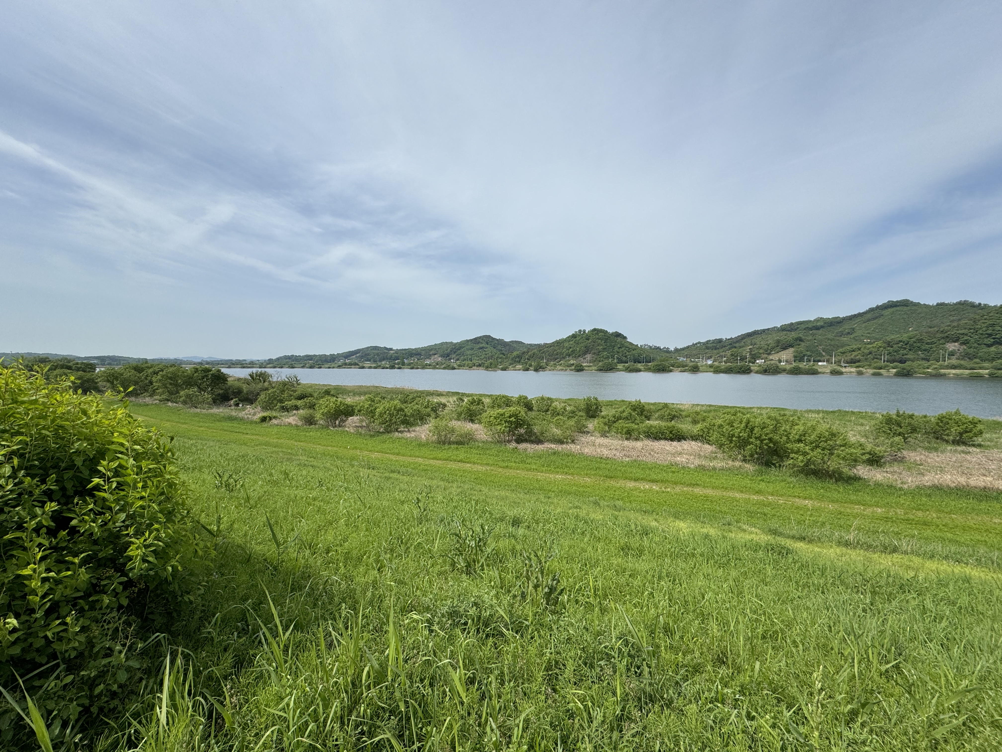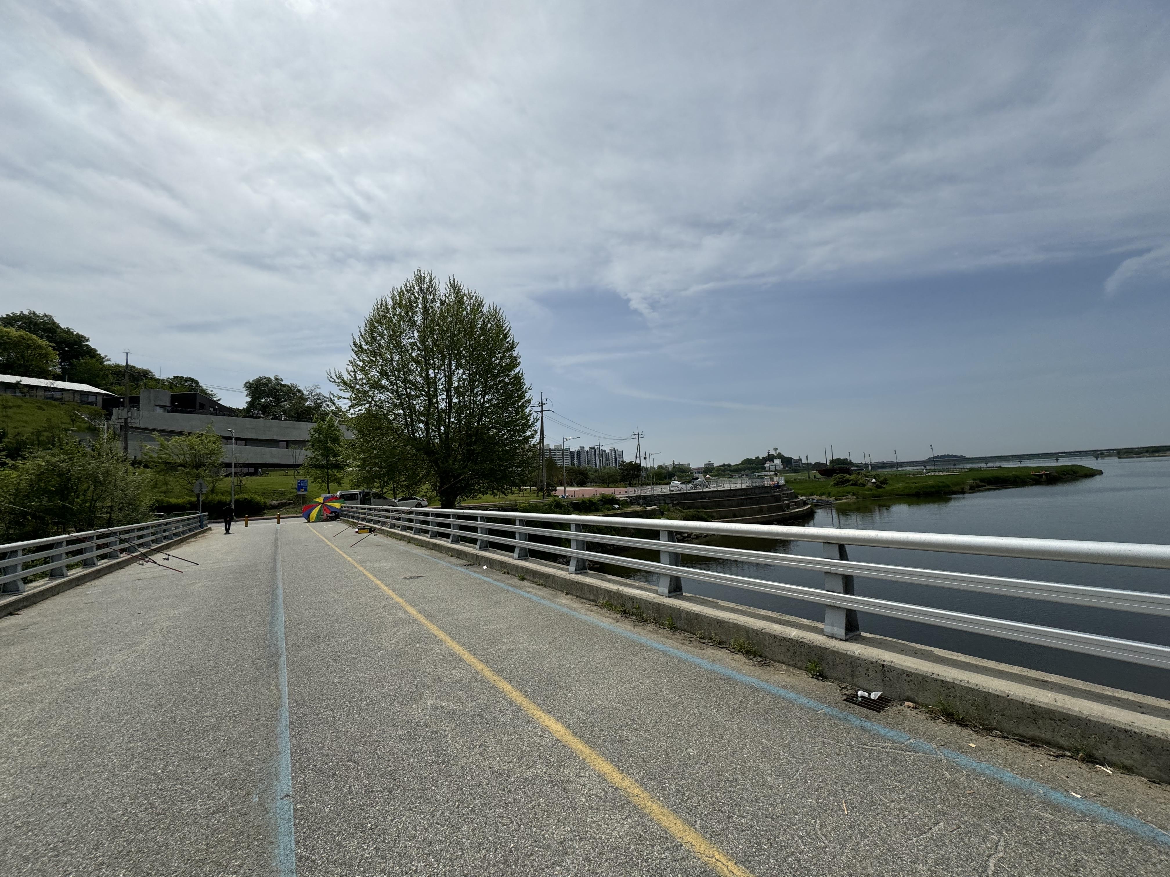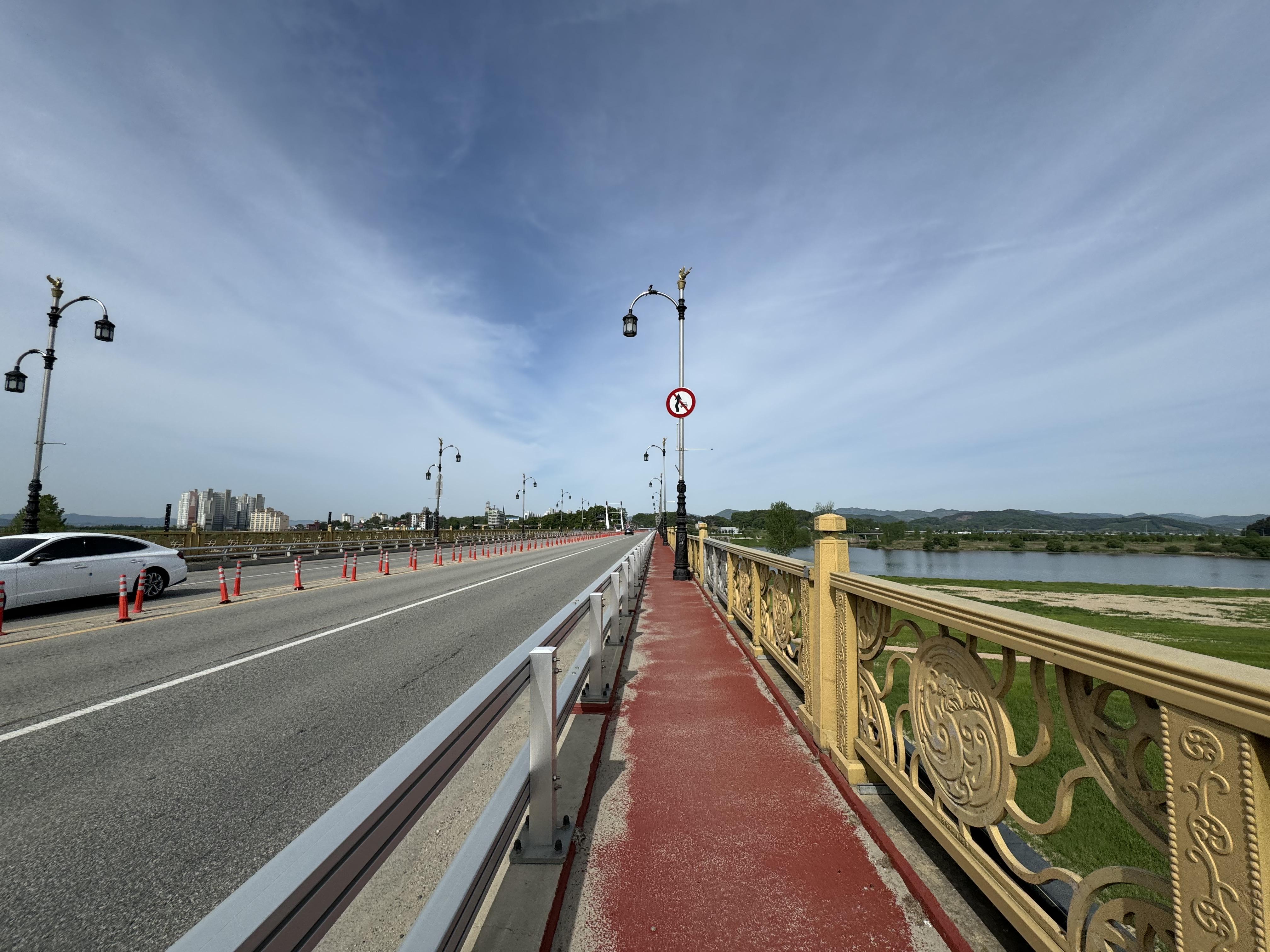 약간 정보성 내용을 적어두자면 바로 아래에 있는 사진의 다리를 건너면 경강 시내의 옆을 달리게 되는데 시내의 끝부분에서 자전거 도로가 두 갈래로 갈린다. 거기에서는 그냥 위로 올라가서 달리는 게 길도 포장이 잘 되어 있고 편해서 좋다. 아래로 달리면 저번 수해로 입은 피해가 아직 복구가 안 되어서 청소가 안 되어 있는 것도 있지만 중간부터는 길을 막아두고 결국 위로 올라가라고 나오기 때문에 처음부터 위로 올라가서 달리는 게 낫다.