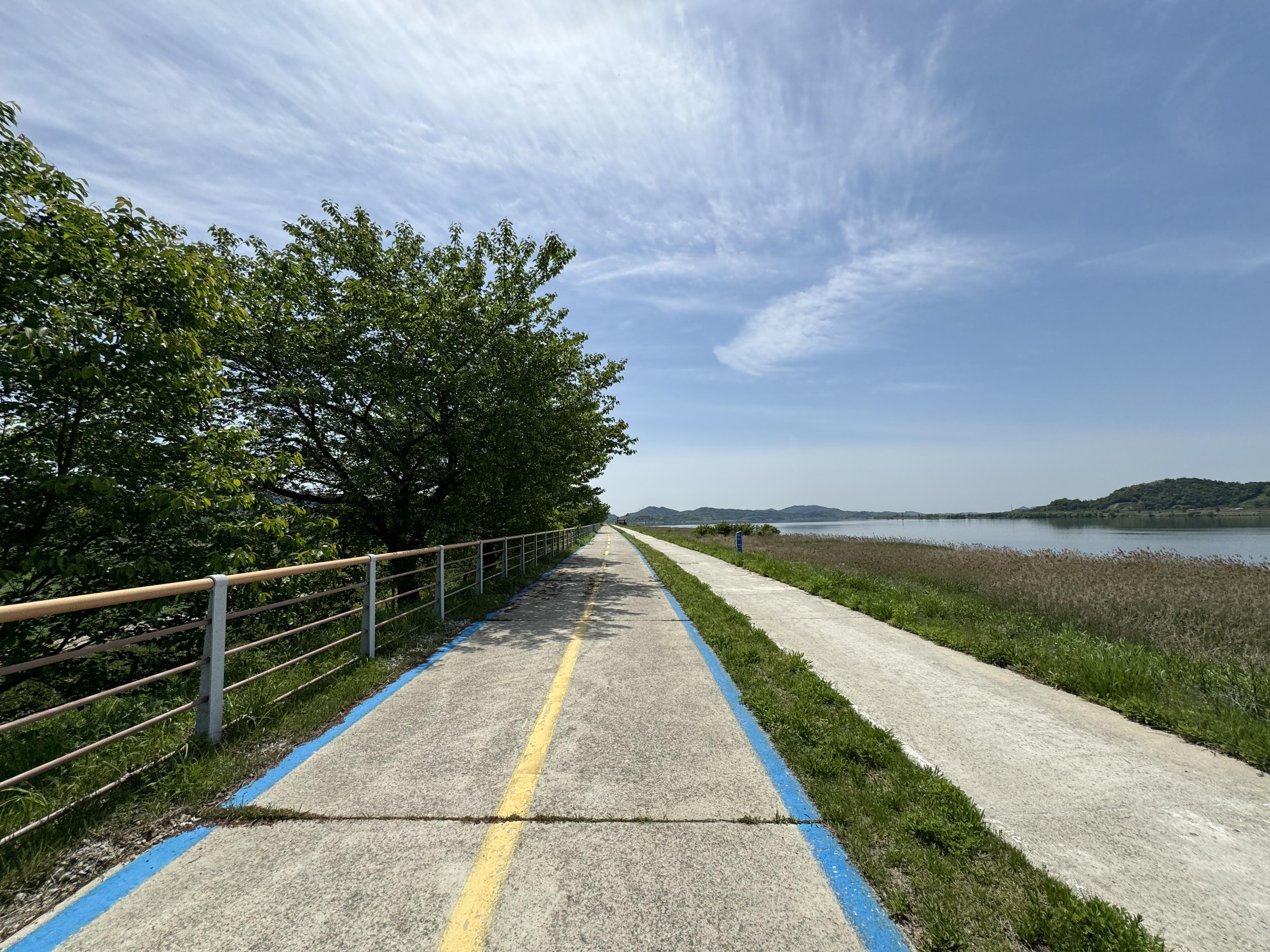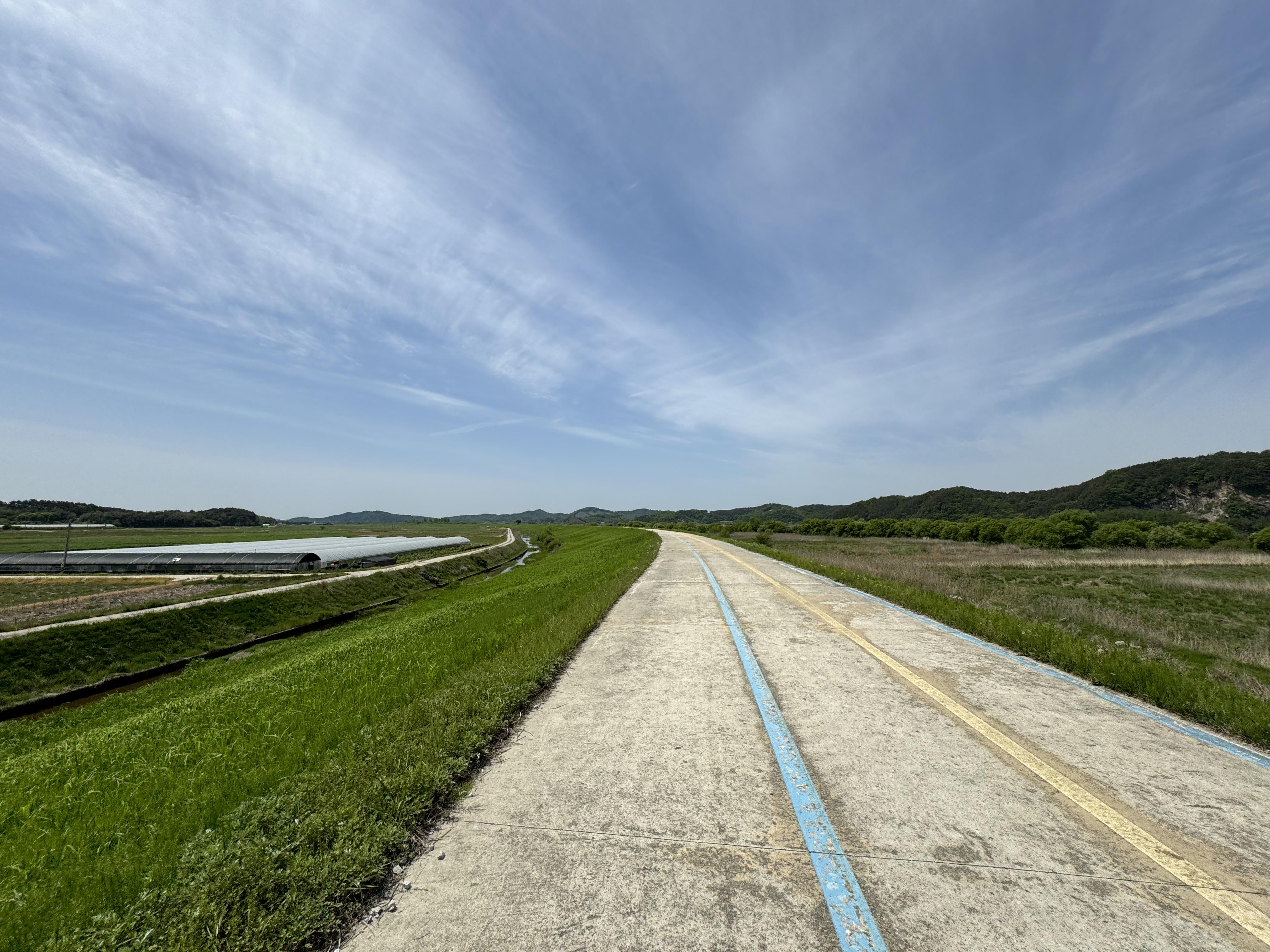 그리고 산길을 지나면 다시 드넓은 평지를 달리게 된다. 사실상 이제 금강하굿둑 인증센터까지 오르막은 두어개 정도만이 남아있다고 보면 된다. 그것도 그렇게 높은 산이라거나 고개가 아니니까 이제부터는 좀 편한 길이 이어진다.