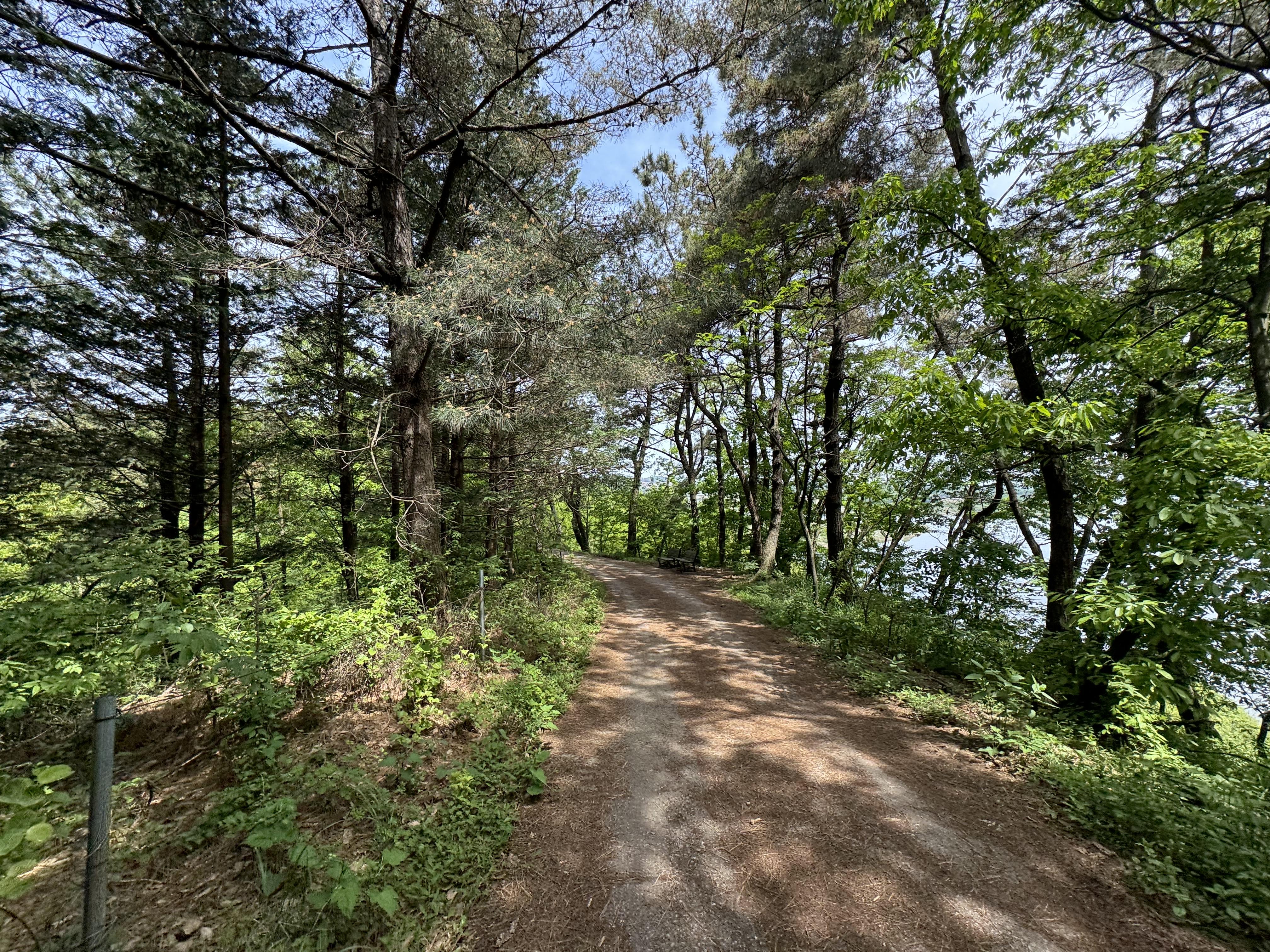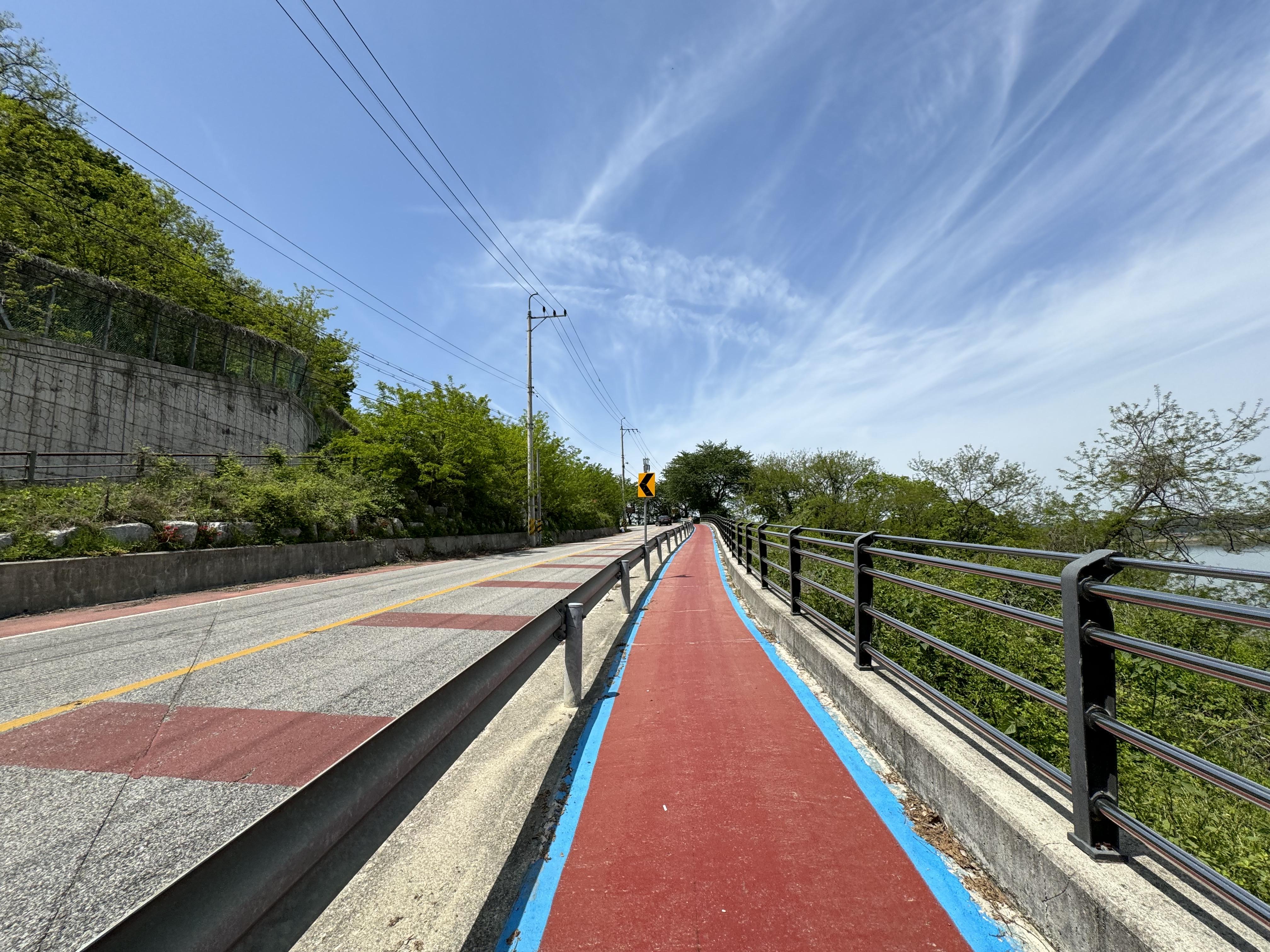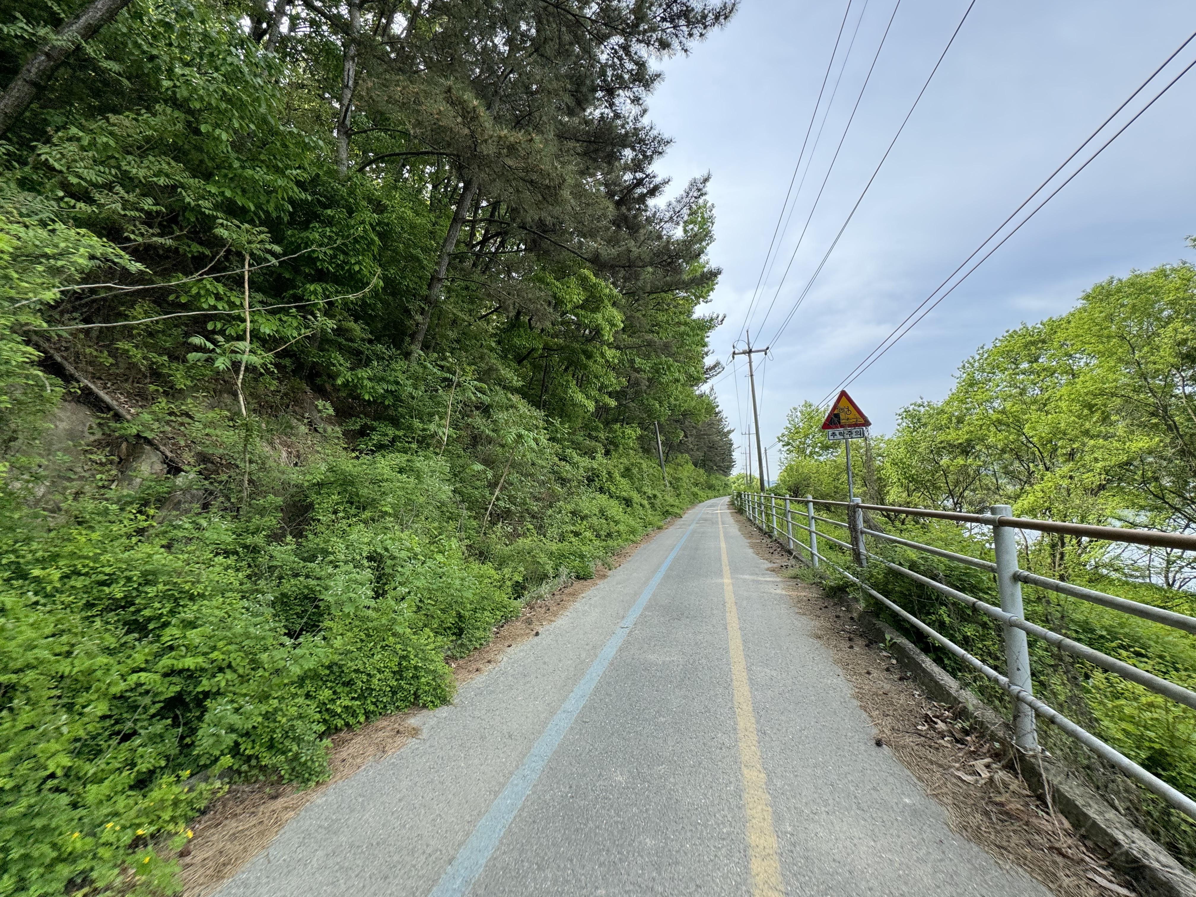 캠핑장을 떠나서 달리다보니 낮은 오르막이 나왔다. 이제 이 오르막을 넘으면 금강 종주에는 더 이상의 오르막은 없는 거니까 조금만 더 힘을 내서 넘어보기로 했다. 예전에 이 쪽 구간을 달렸을 때는 어두컴컴한 밤에 달렸더니 오르막이 있었는지 없었는지도 몰랐는데 이렇게 낮에 와보니 확실하게 오르막이 있었다.