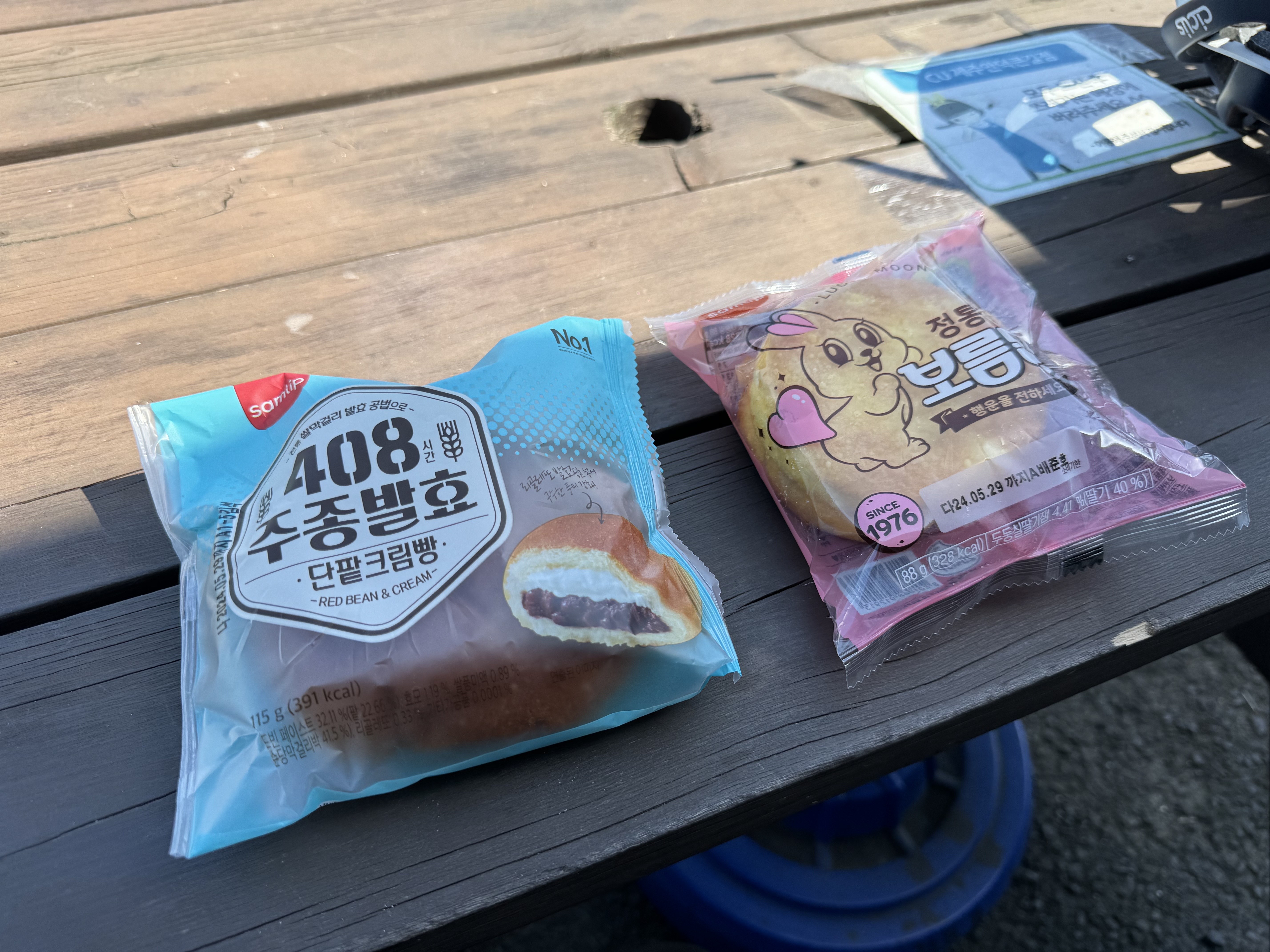 펑크를 후다닥 떼우고 편의점에 들러 간단히 배를 채웠다. 하루에 한번은 편의점에서 배를 채우는 것 같은데 사실 제주환상자전거길만이 아니고 종주를 다니다보면 편의점에서 배를 채우는 건 흔한 일이지만 누군가에게 편의점 사진을 보낼 때마다 저기... 제주도 맞으시죠...? 라는 반응이 돌아왔다.