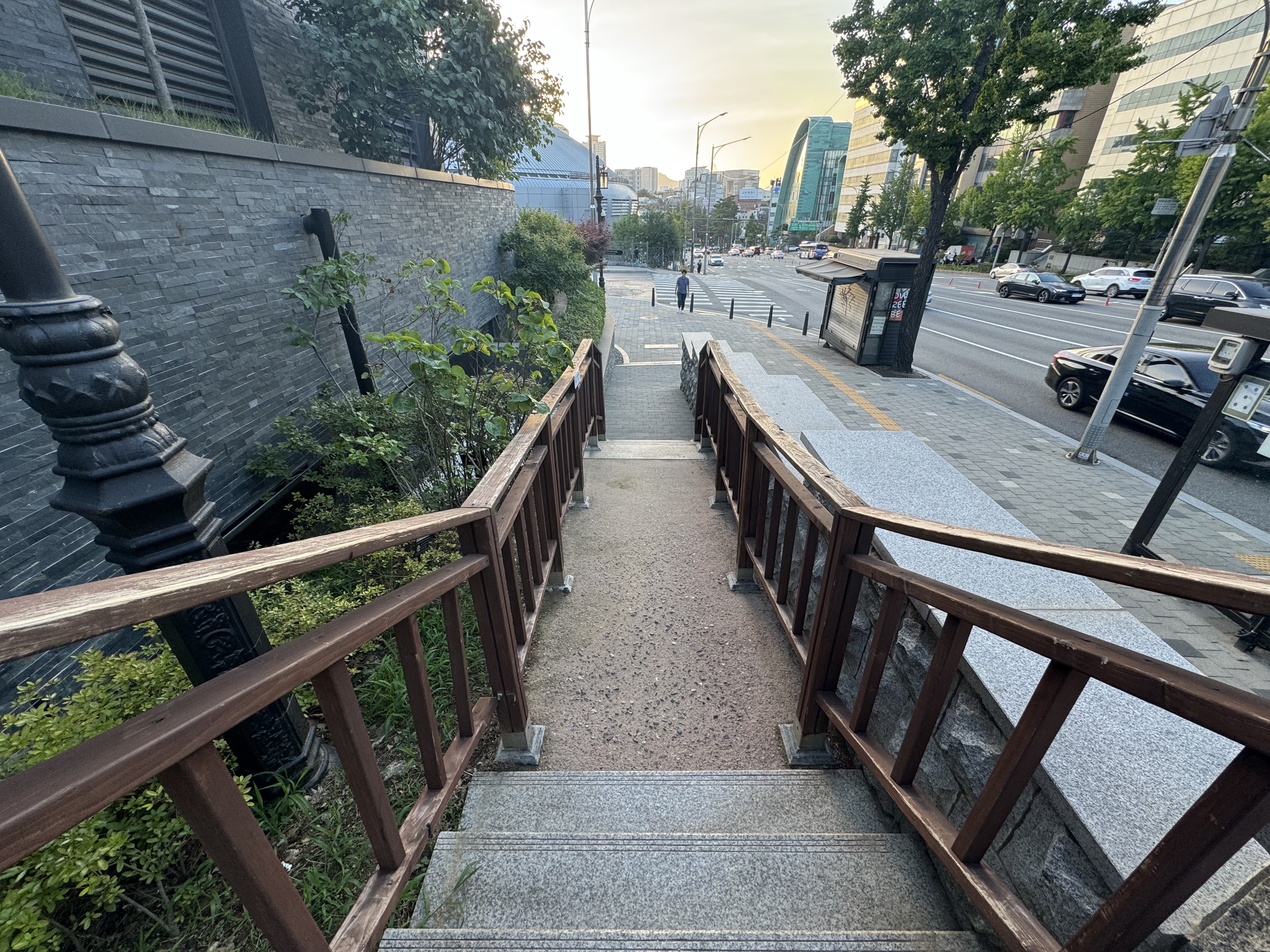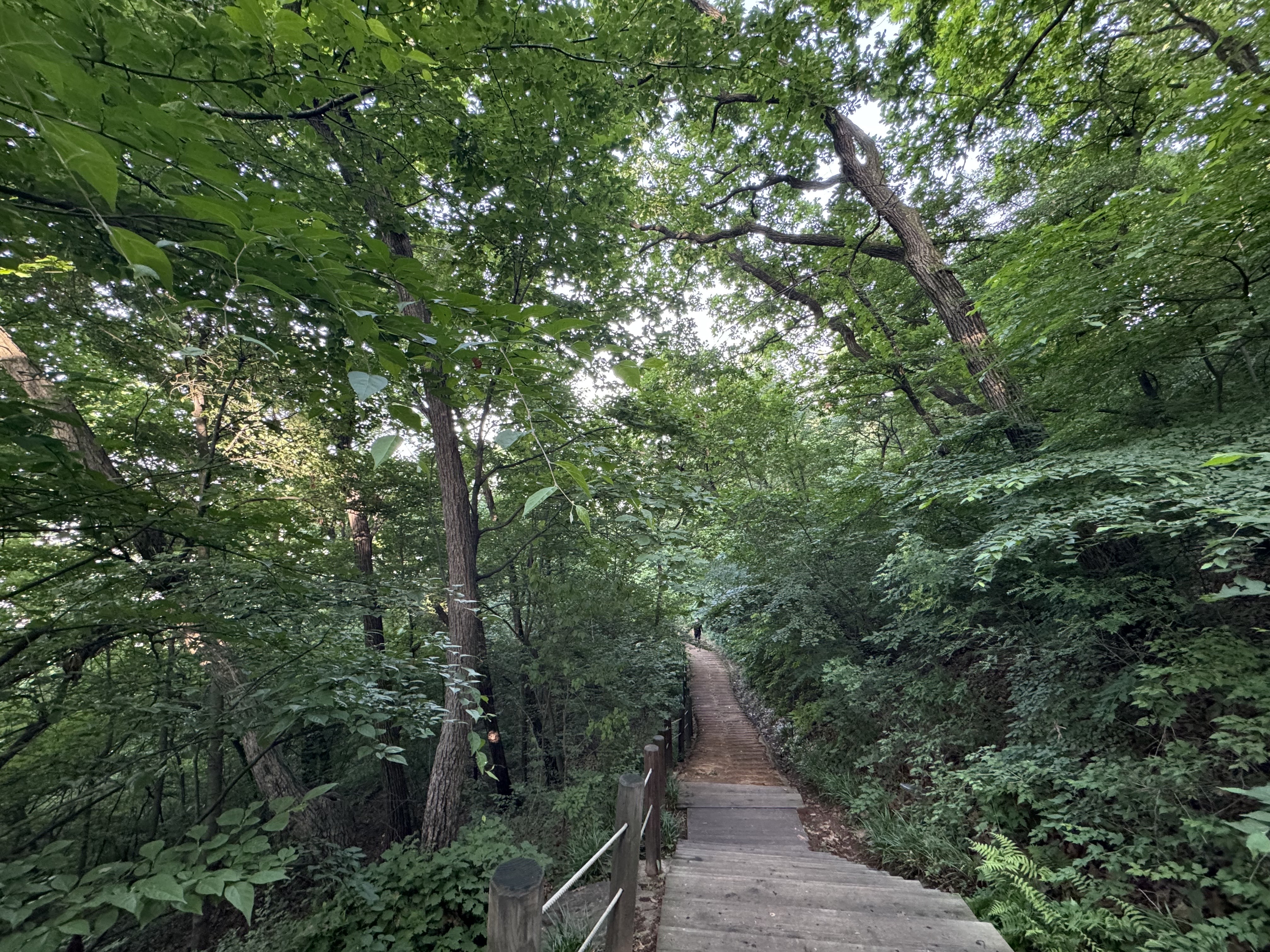 이 날이 무슨 날이었는지 백악산 하산길에 반대편에서 서양 사람들이 단체로 올라오고 있었는데 내가 저 계단을 올라올 때 반대편에서 내려오던 사람들이 이런 기분이었겠구나 싶은 기분을 확실히 느낄 수 있었다. 여기 계단은 진짜 생각만 해도 끔찍하다.