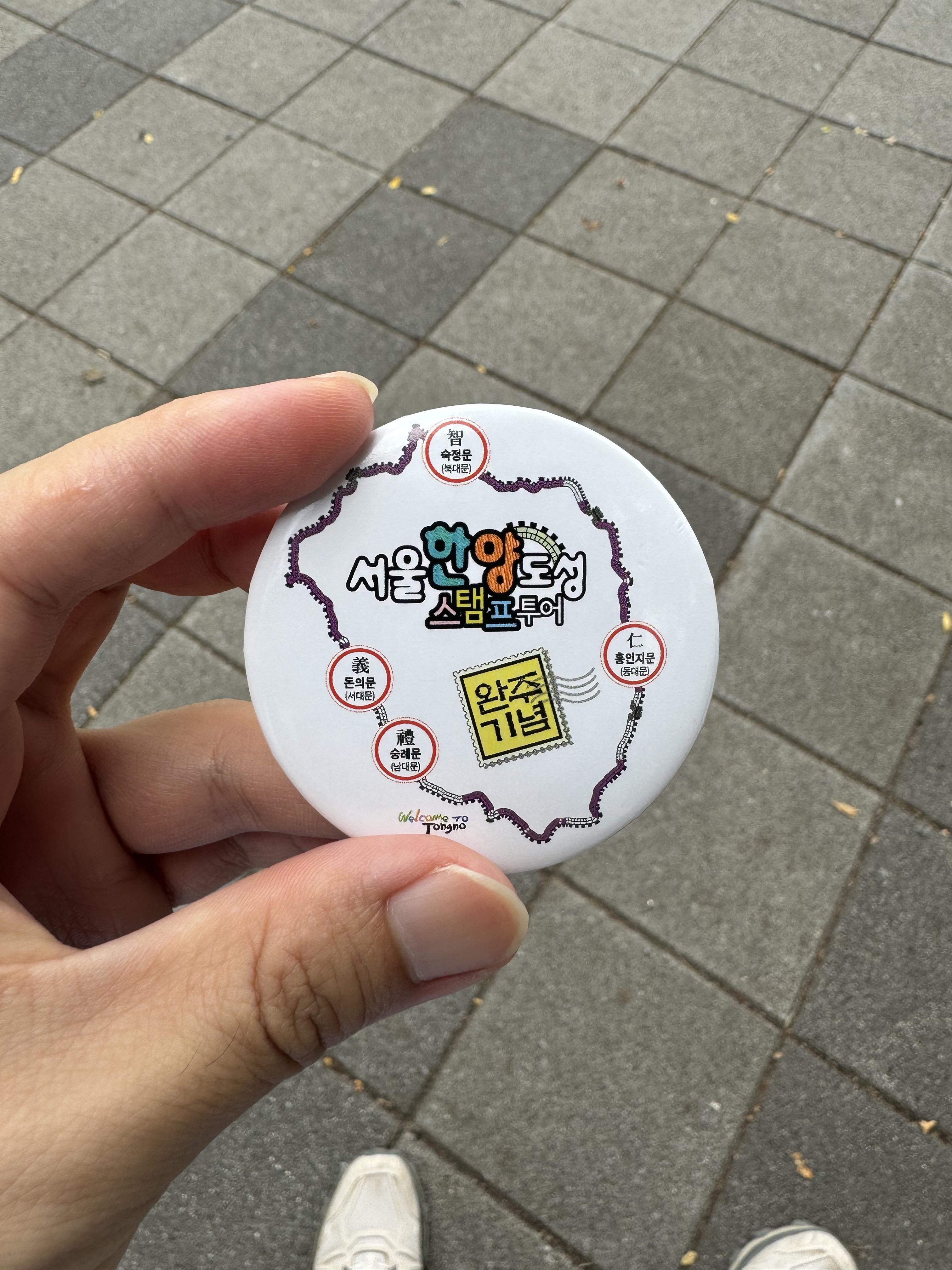 보통 어플로 한양도성 순성길 스탬프를 찍으시는 분들은 이걸 잘 모르시는 것 같던데 완주 인증 뱃지 외에도 스탬프를 모으면 주는 흰색 뱃지가 따로 있으니 한 번쯤은 스탬프 용지에 스탬프를 찍어보는 것을 추천한다. 어플로 찍어도 줄 것 같긴 한데 난 어플을 사용하지 않아서 잘 모르겠다.