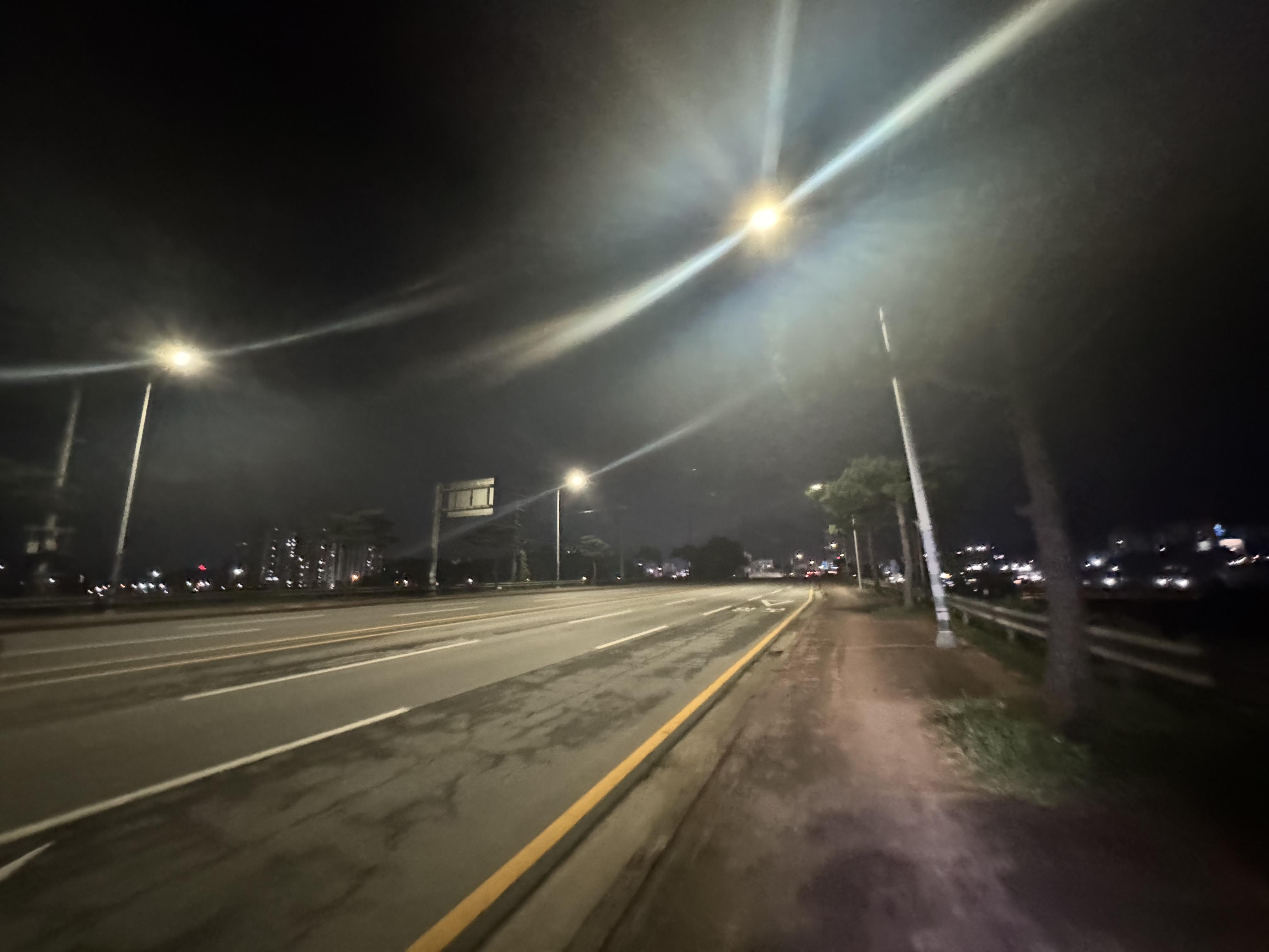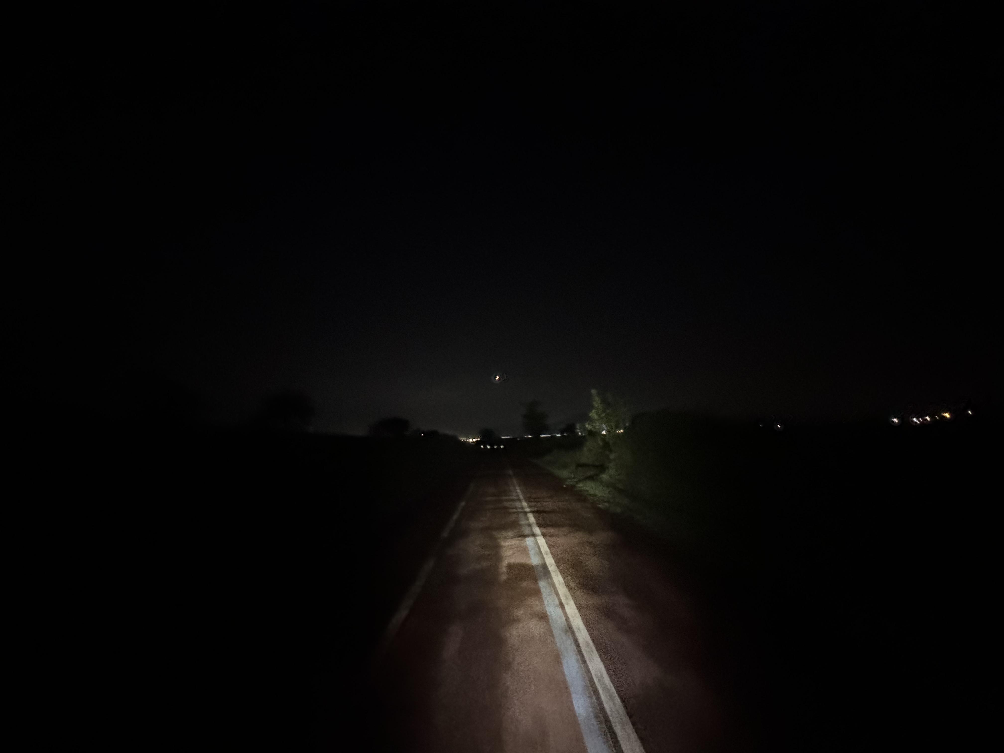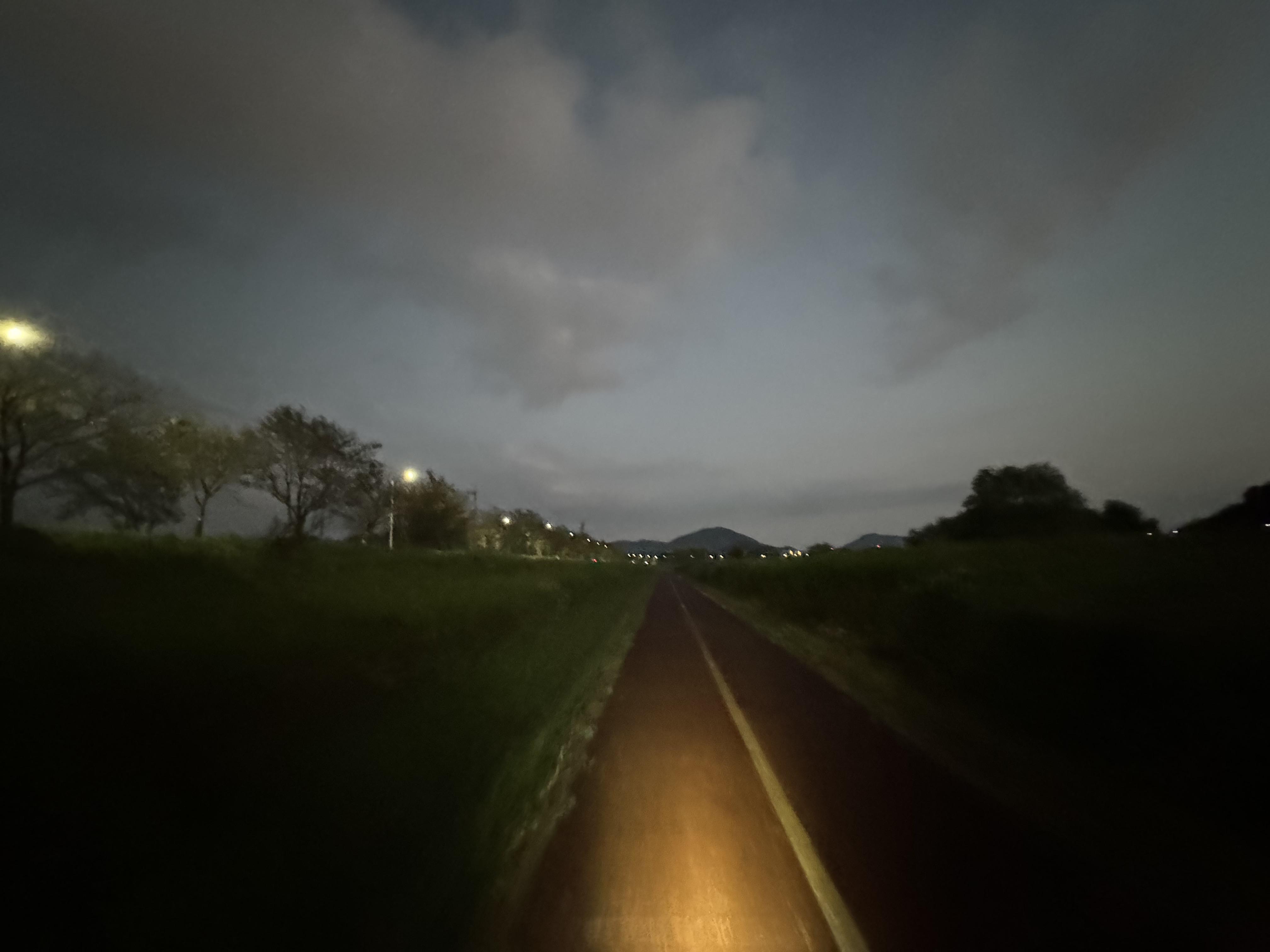 아래 사진을 보면 알겠지만 정말 내 전조등이 비추는 곳 외에는 단 하나의 빛도 없는 이런 곳에서 아무런 보호장비, 라이트도 없이 런닝을 하던 분도 계셨는데 발 밑이 보이긴 하는 걸까? 인기척도 없는 곳인데 사고라도 나면 어쩌려고...