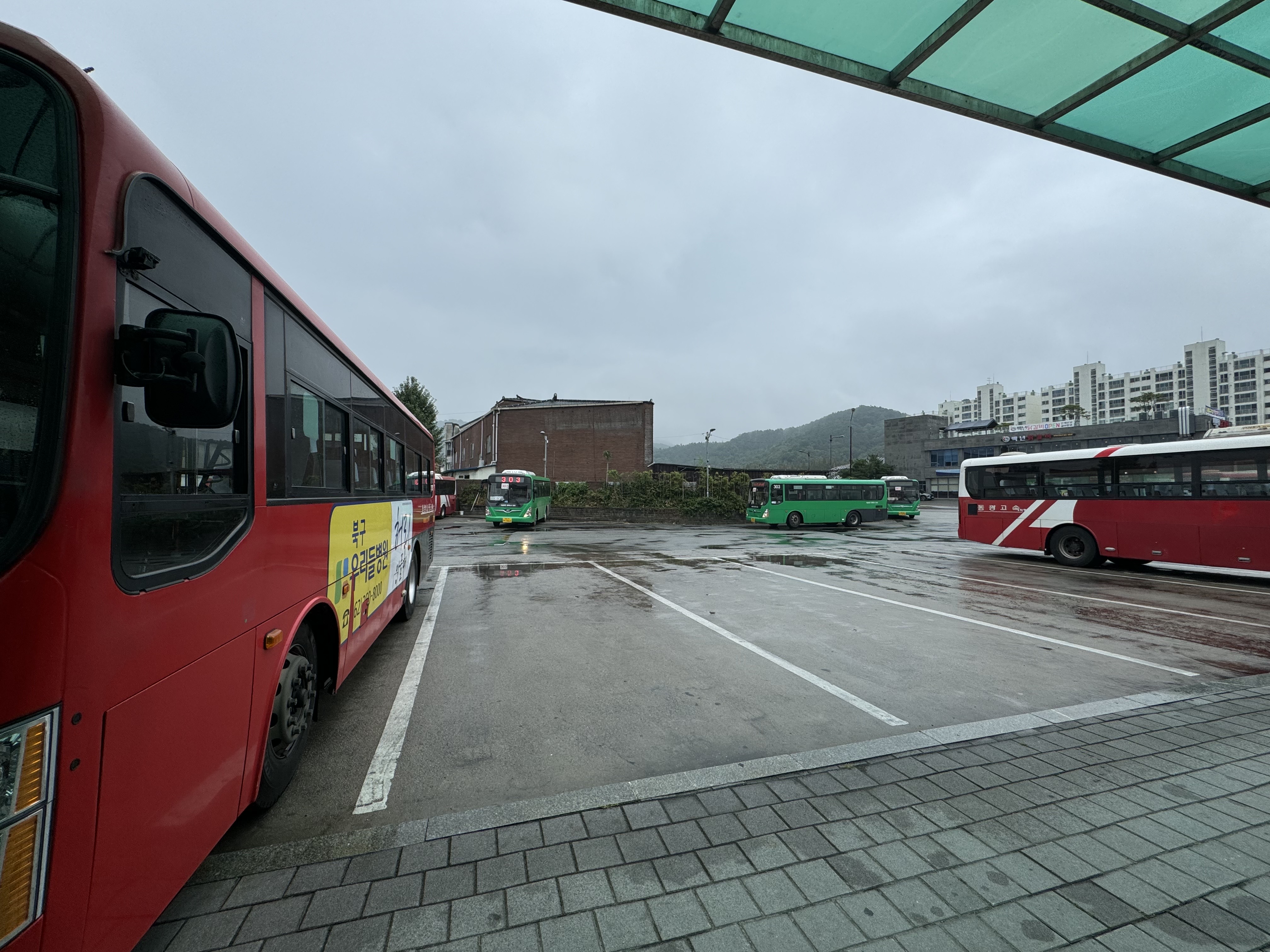 아니나다를까, 담양공용버스터미널에 도착하니 비가 내리고 있었다. 담양에 도착하기 바로 전까지만 해도 아주 쾌청한 하늘이 몇 시간이나 이어졌었는데 왜 하필이면 이 쪽 지방만 비가 오고 있는건지... 재수가 없으려면 이렇게도 없을 수 있는 법이다.