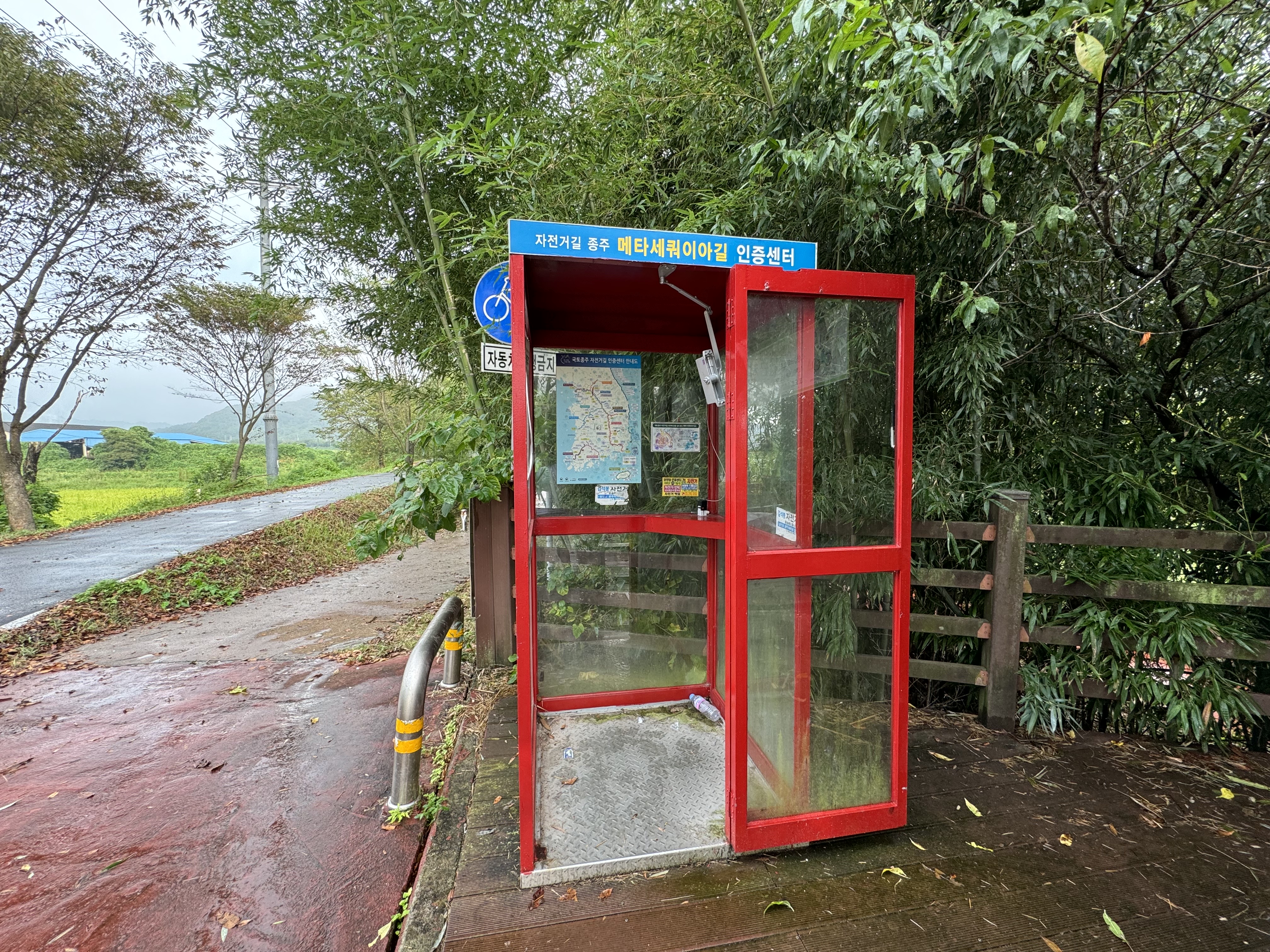 여기까지 왔으면 입장은 불가하더라도 메타세쿼이아길 인증센터의 옆에 위치한 메타세쿼이아길의 입구라도 보고 가야 인지상정인데 역시 비도 오고 날도 어둑어둑하니 그런 걸 즐길 여유가 없었다. 바로 다음 인증센터인 담양대나무숲 인증센터로 출발했다.