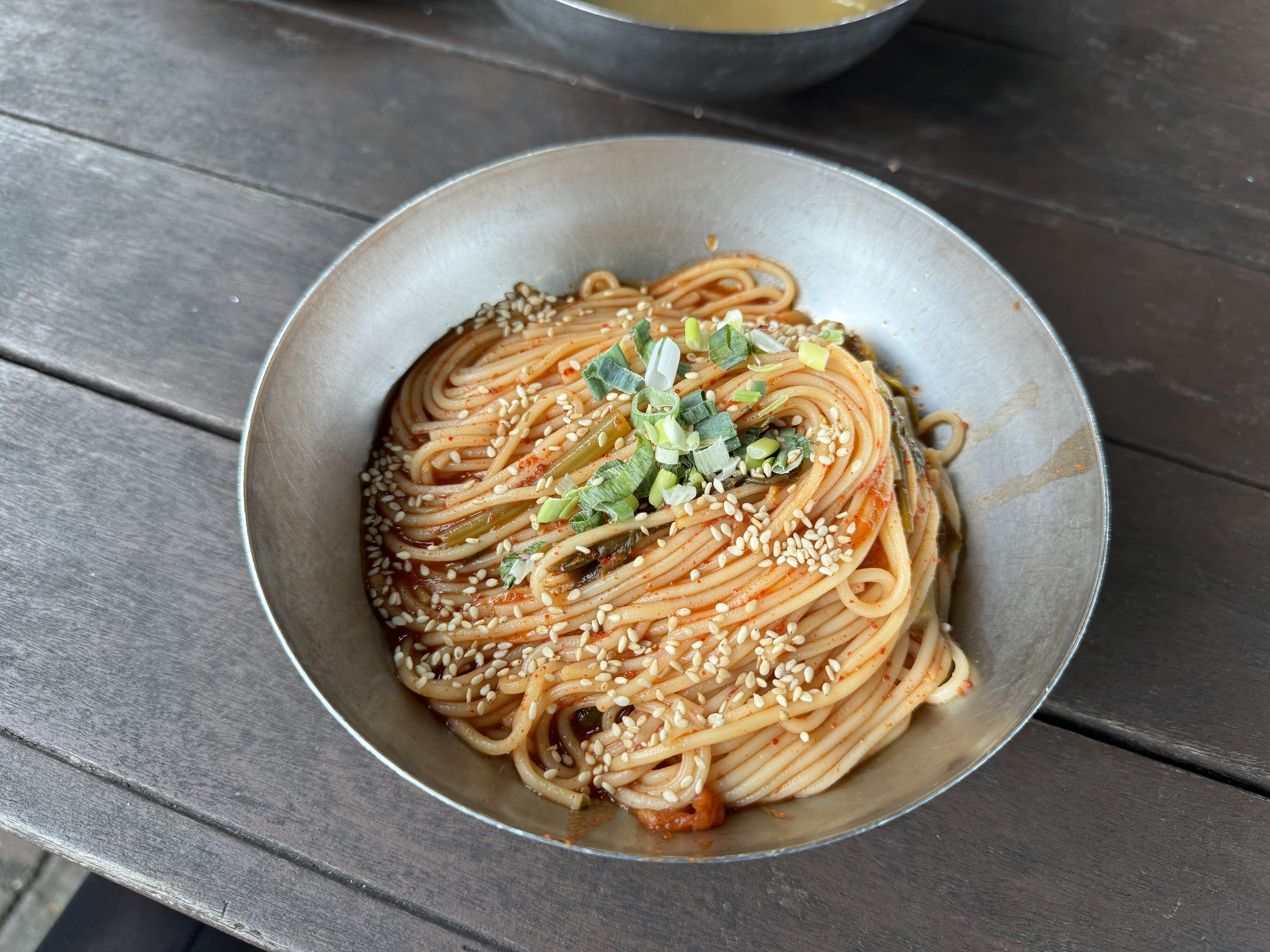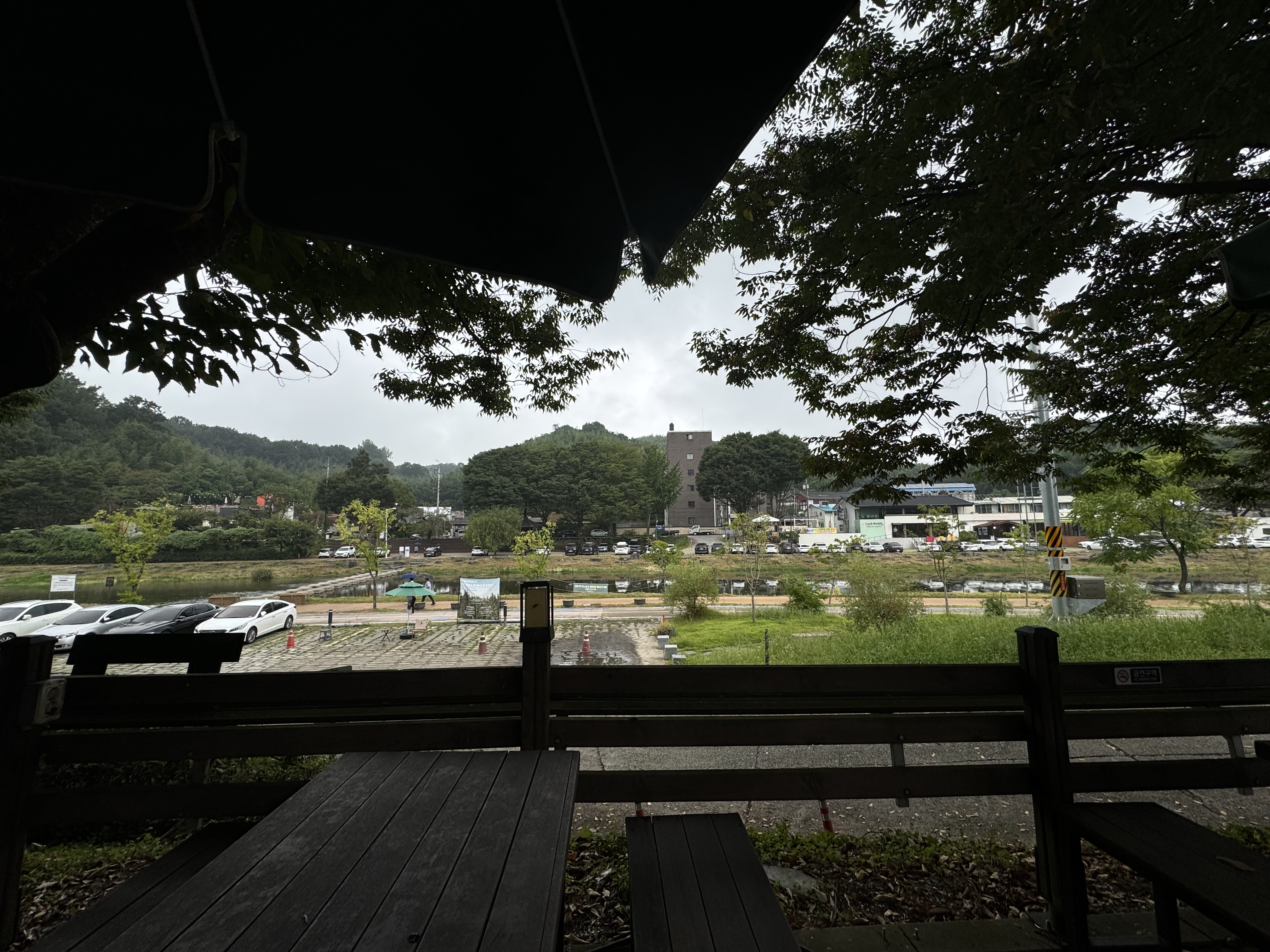 담양댐 인증센터로 가기 전에 국수거리에서 밥을 먹기로 했다. 여기에서 밥을 먹지 않으면 저녁 시간이 매우 애매해질 것 같았다. 국수거리에는 비가 오고 있음에도 생각보다 많은 사람이 있었는데 아무래도 밥 시간은 한참 지난 뒤여서 그랬는지 식당에 사람이 전혀 없어서 덕분에 강이 보이는 좋은 자리에서 밥을 먹을 수 있었다.