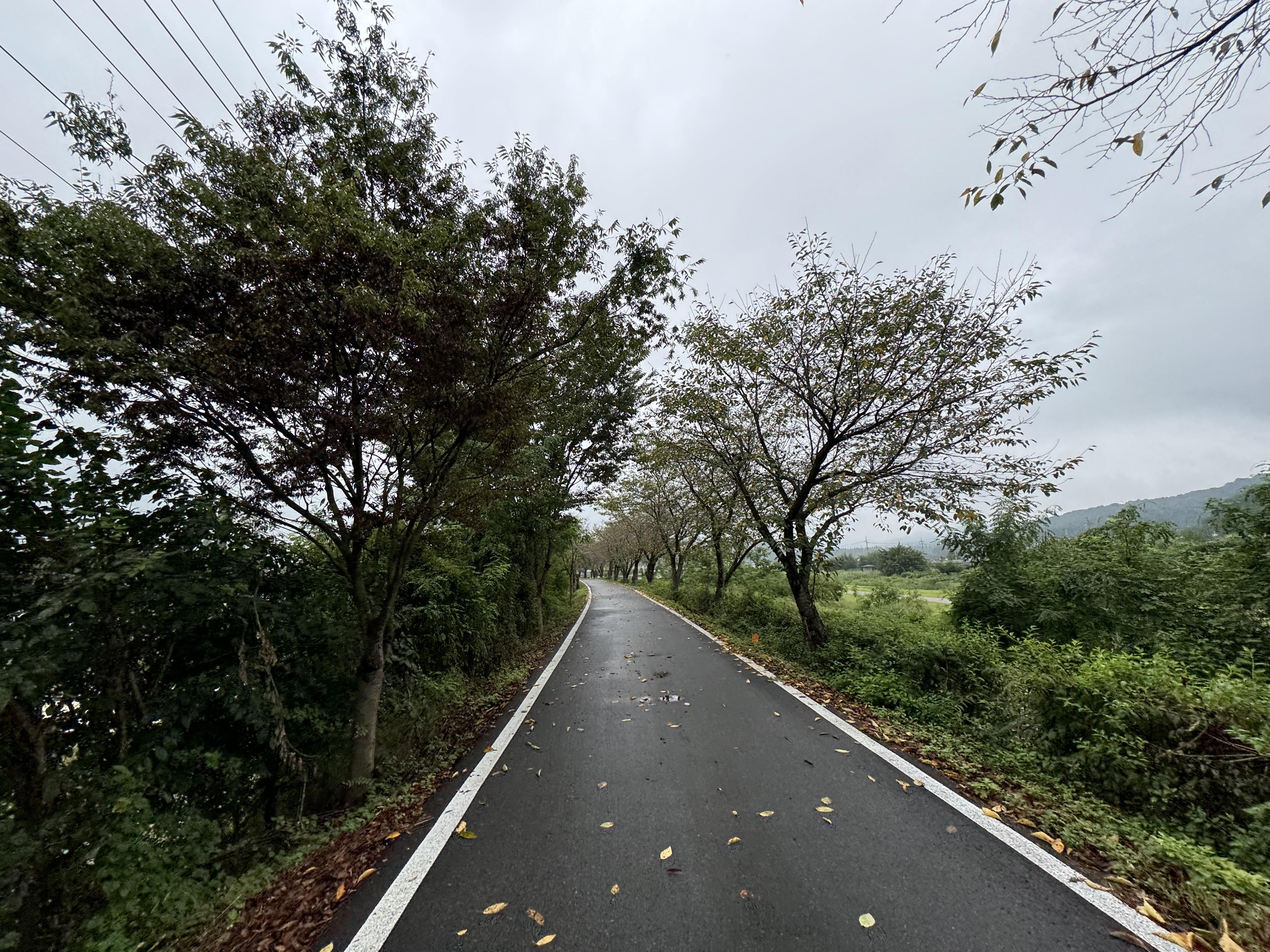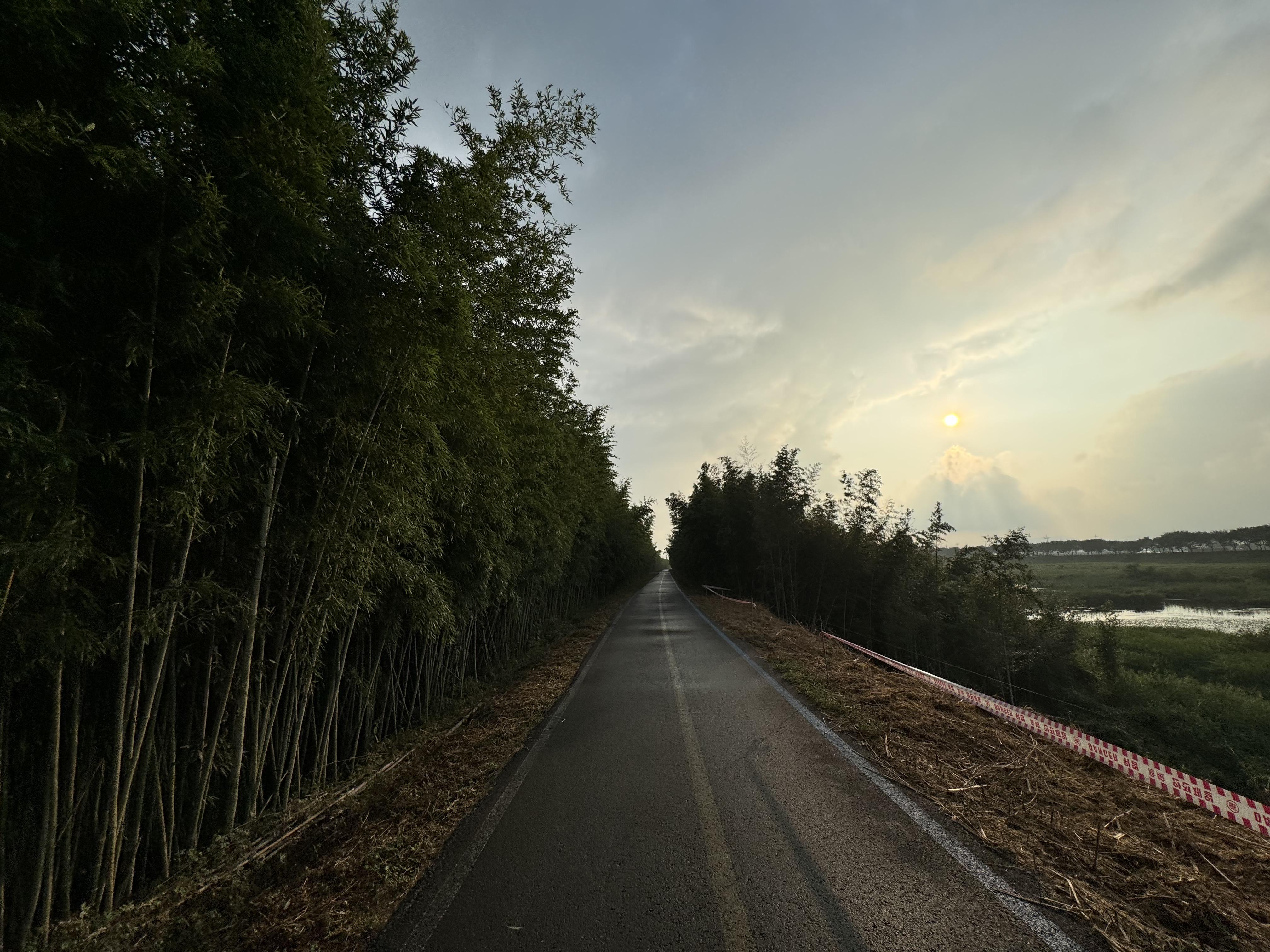 비가 그치긴 했어도 바닥이 젖어있으니 자전거를 타고 달리기가 힘들긴 했지만 비가 온 덕분인지 꽤나 운치 있는 풍경들이 많이 연출되고 있어서 달리는 내내 눈이 지루하지는 않아서 좋았다. 특히 대나무숲의 촉촉한 느낌을 사진으로 찍으니 CG 같은 느낌도 들었다.