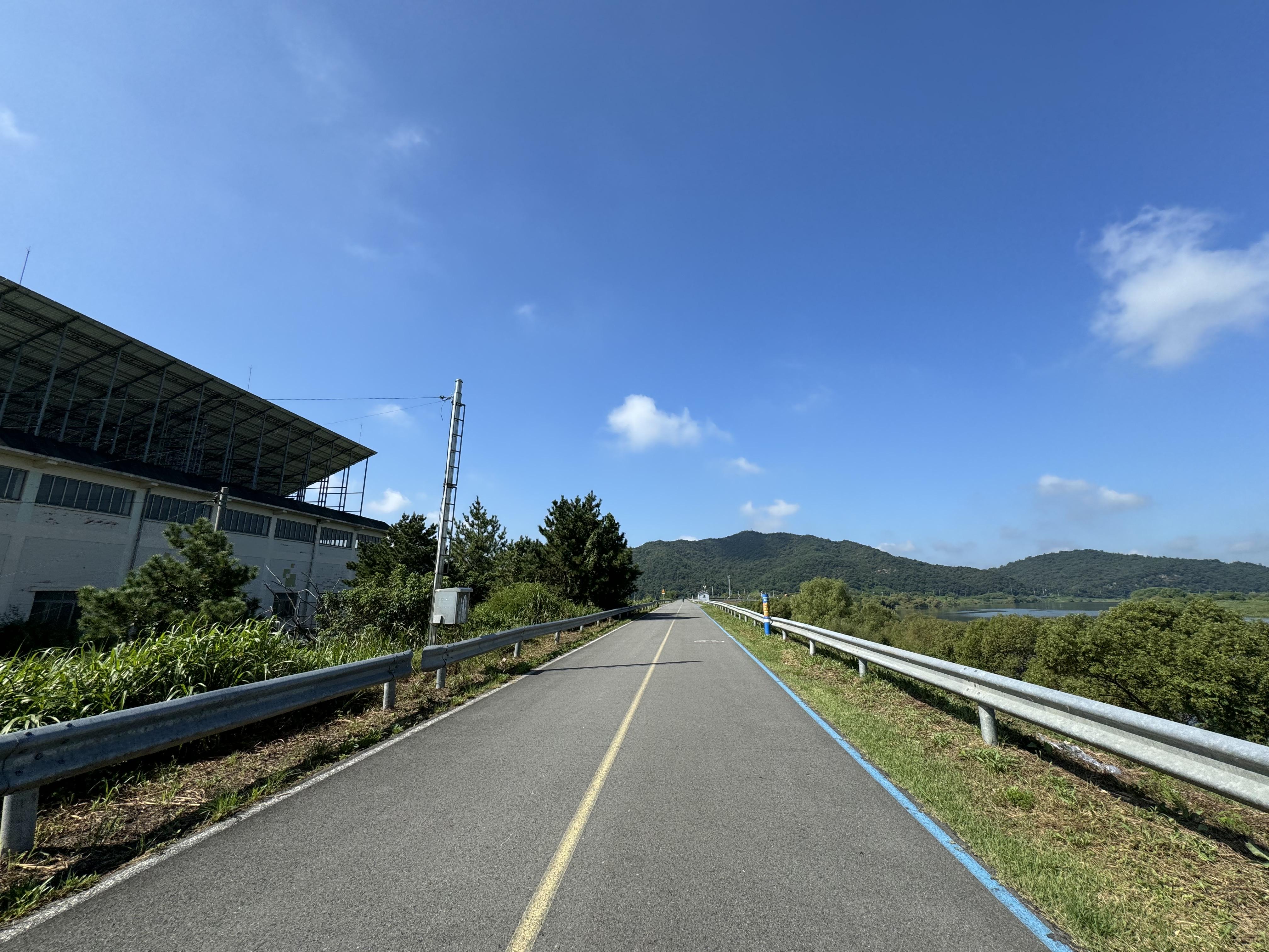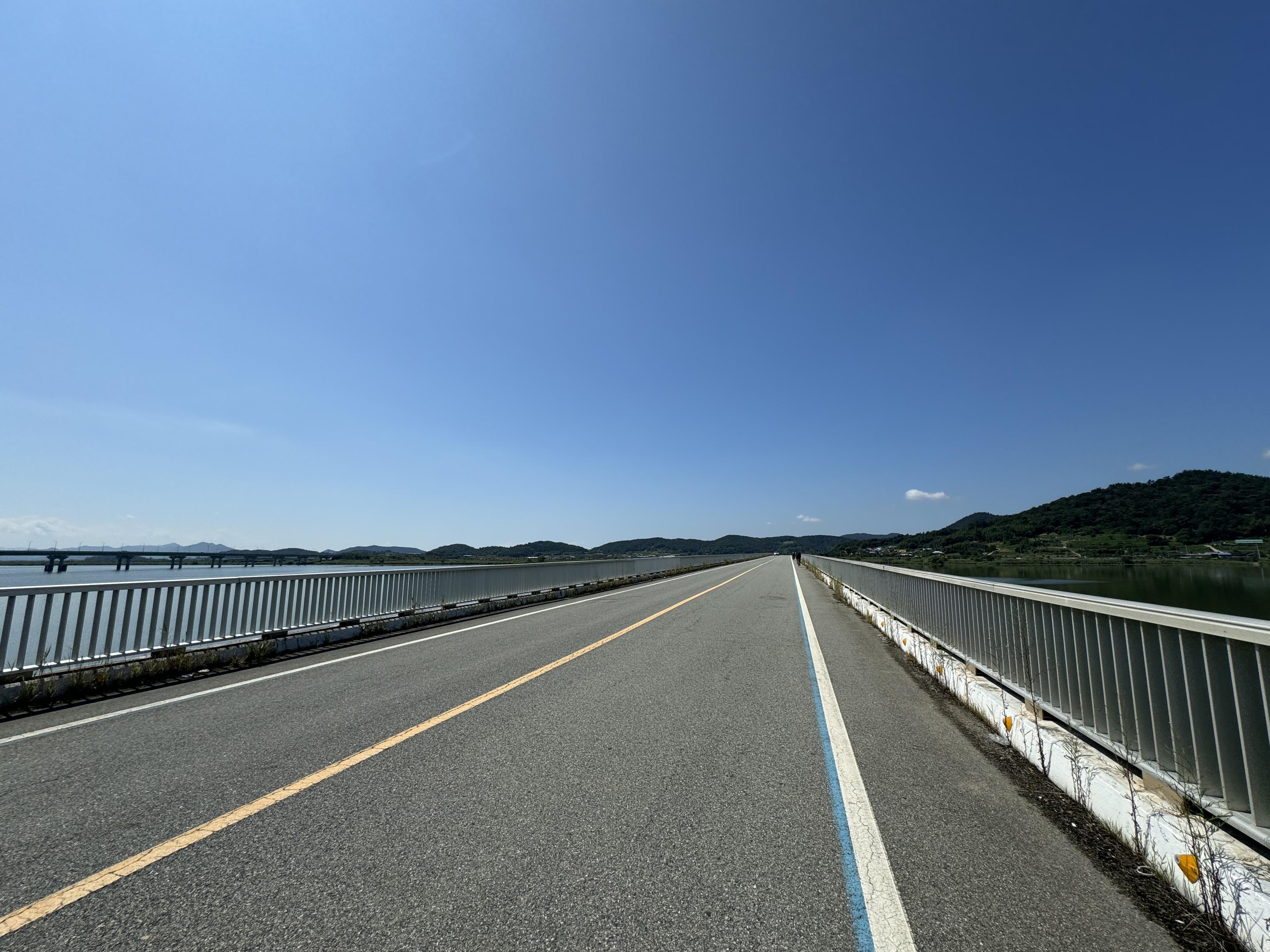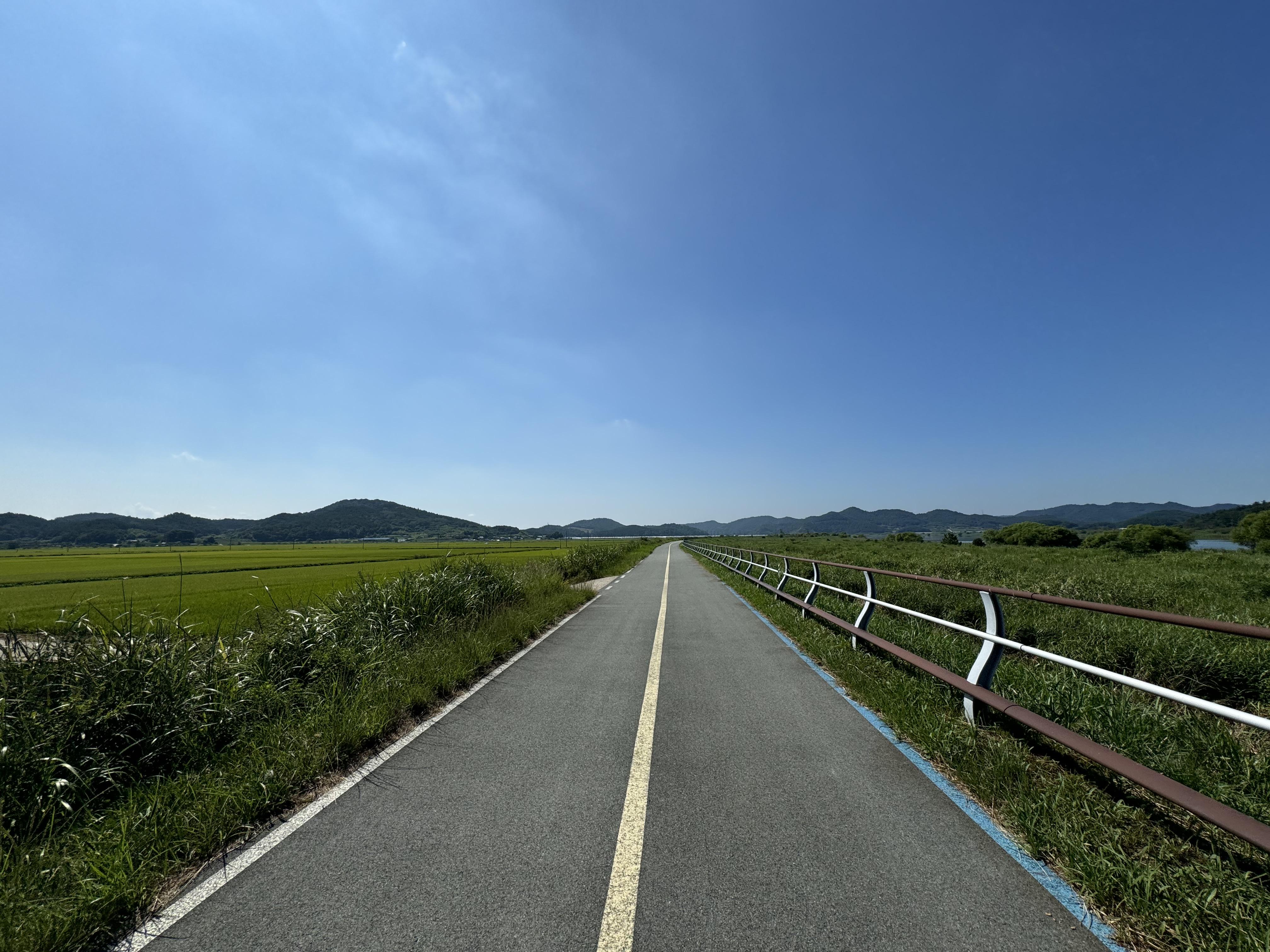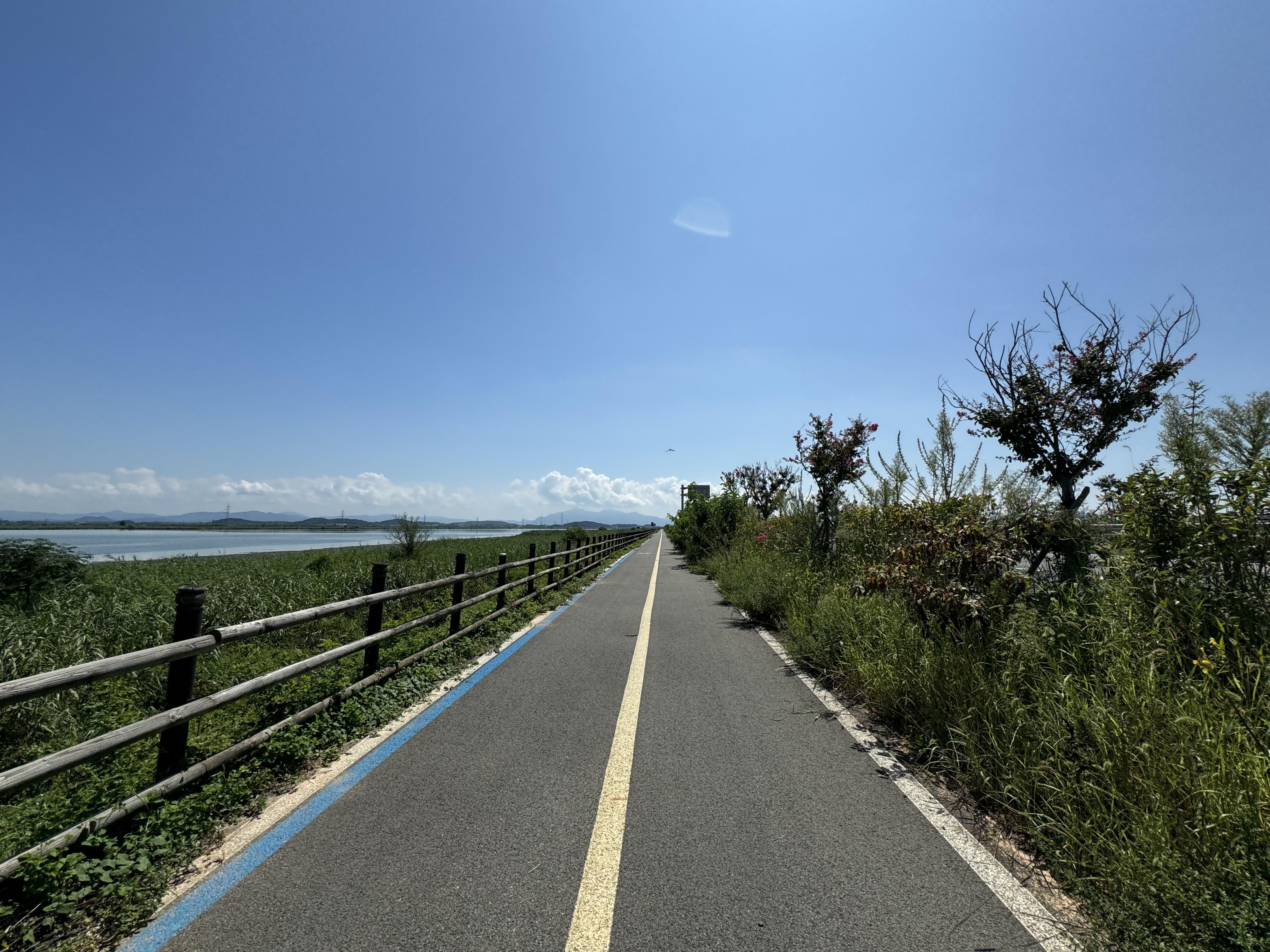 죽산보 인증센터를 지나면서부터는 도로의 포장이 너무 잘 되어 있어서 그나마 편하게 달릴 수 있었다. 바람이 약간 역풍이었던 것, 햇빛이 너무나도 강렬했던 것만 제외하면 달리기에는 최적이었는데 이 쪽부터는 낙동강 종주의 낙동사막이라는 단어가 떠오를 정도로 끝이 보이지 않는 직선 도로가 자주 나왔다.