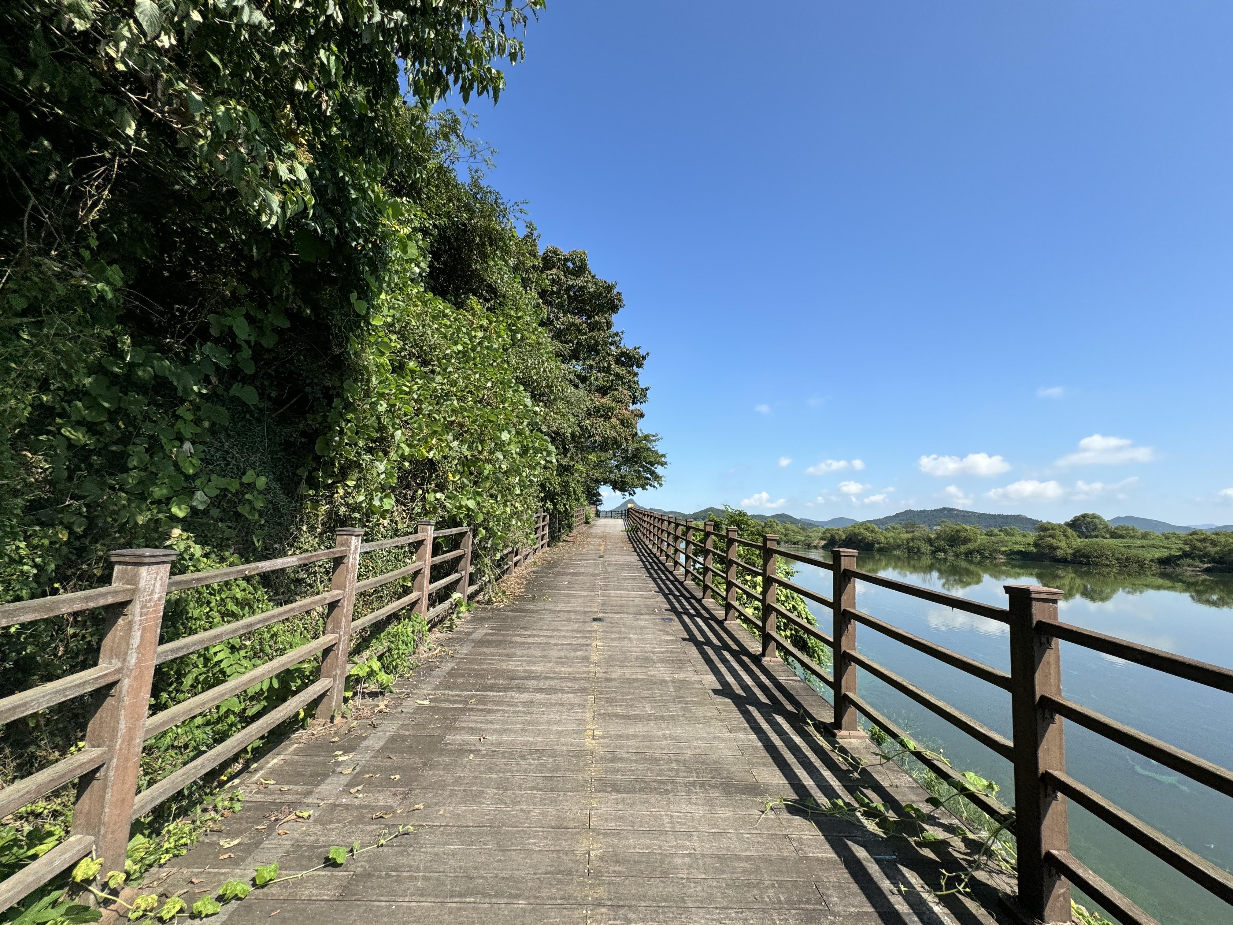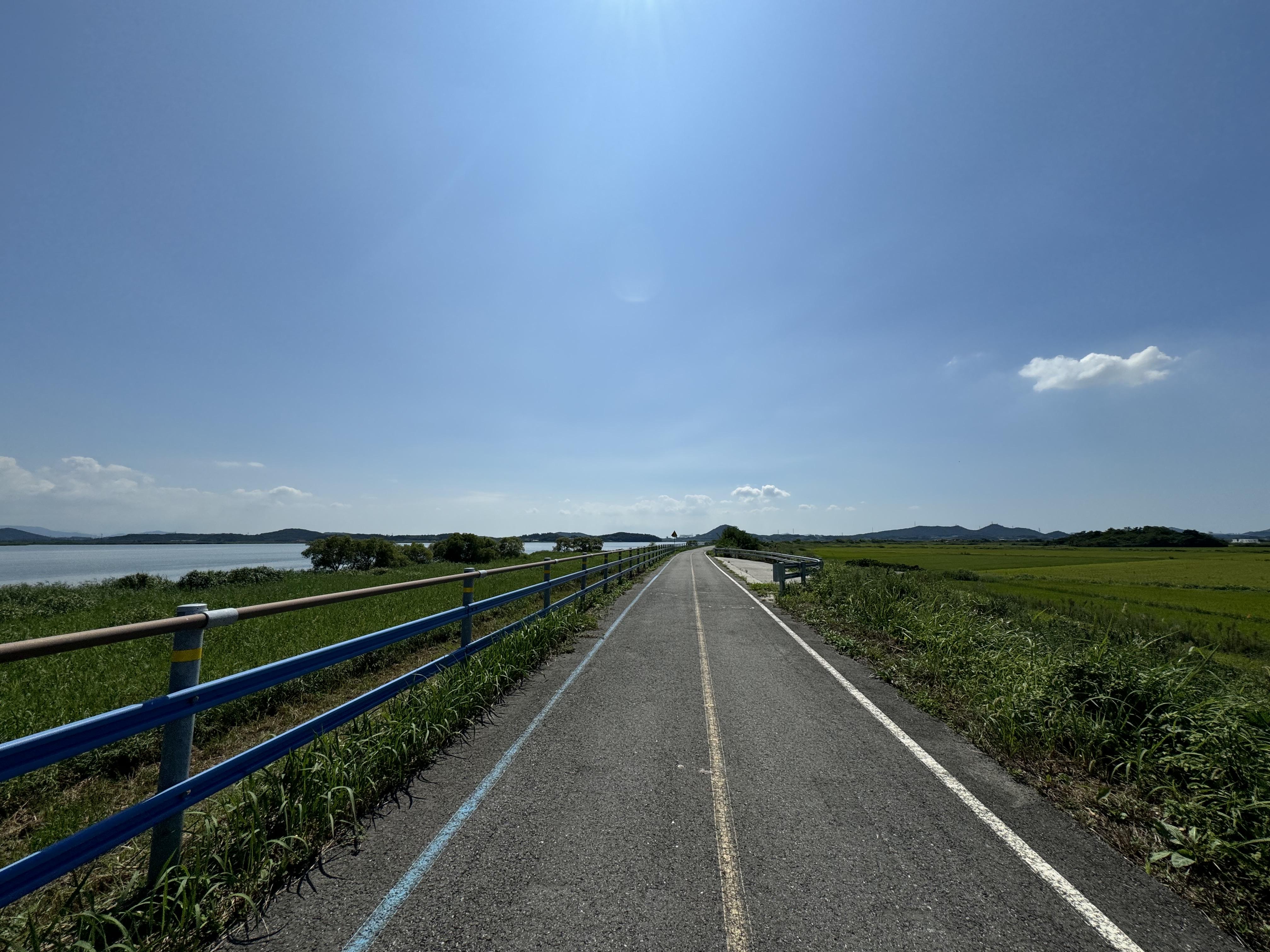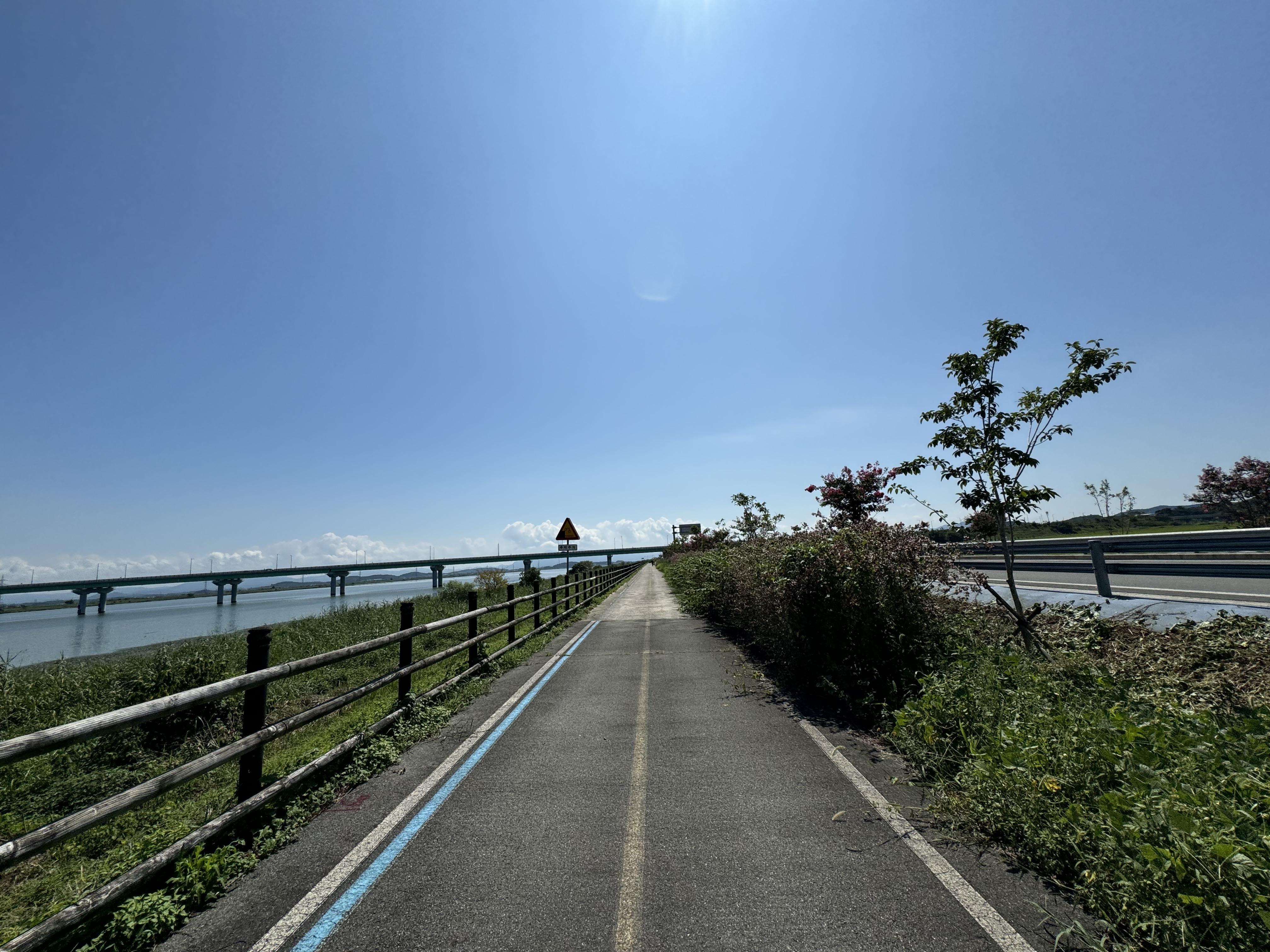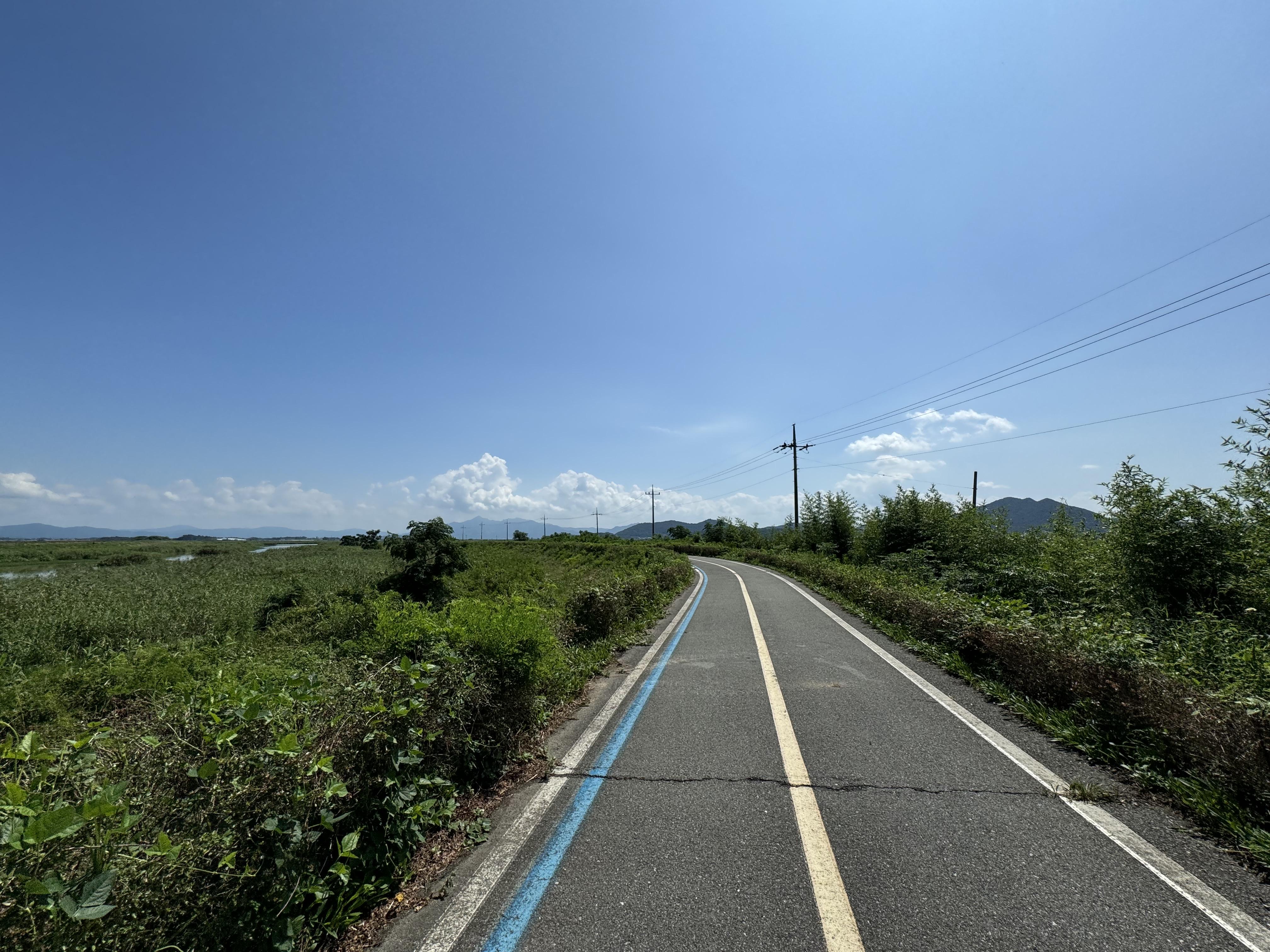 죽산보 인증센터를 지나면서부터는 도로의 포장이 너무 잘 되어 있어서 그나마 편하게 달릴 수 있었다. 바람이 약간 역풍이었던 것, 햇빛이 너무나도 강렬했던 것만 제외하면 달리기에는 최적이었는데 이 쪽부터는 낙동강 종주의 낙동사막이라는 단어가 떠오를 정도로 끝이 보이지 않는 직선 도로가 자주 나왔다.