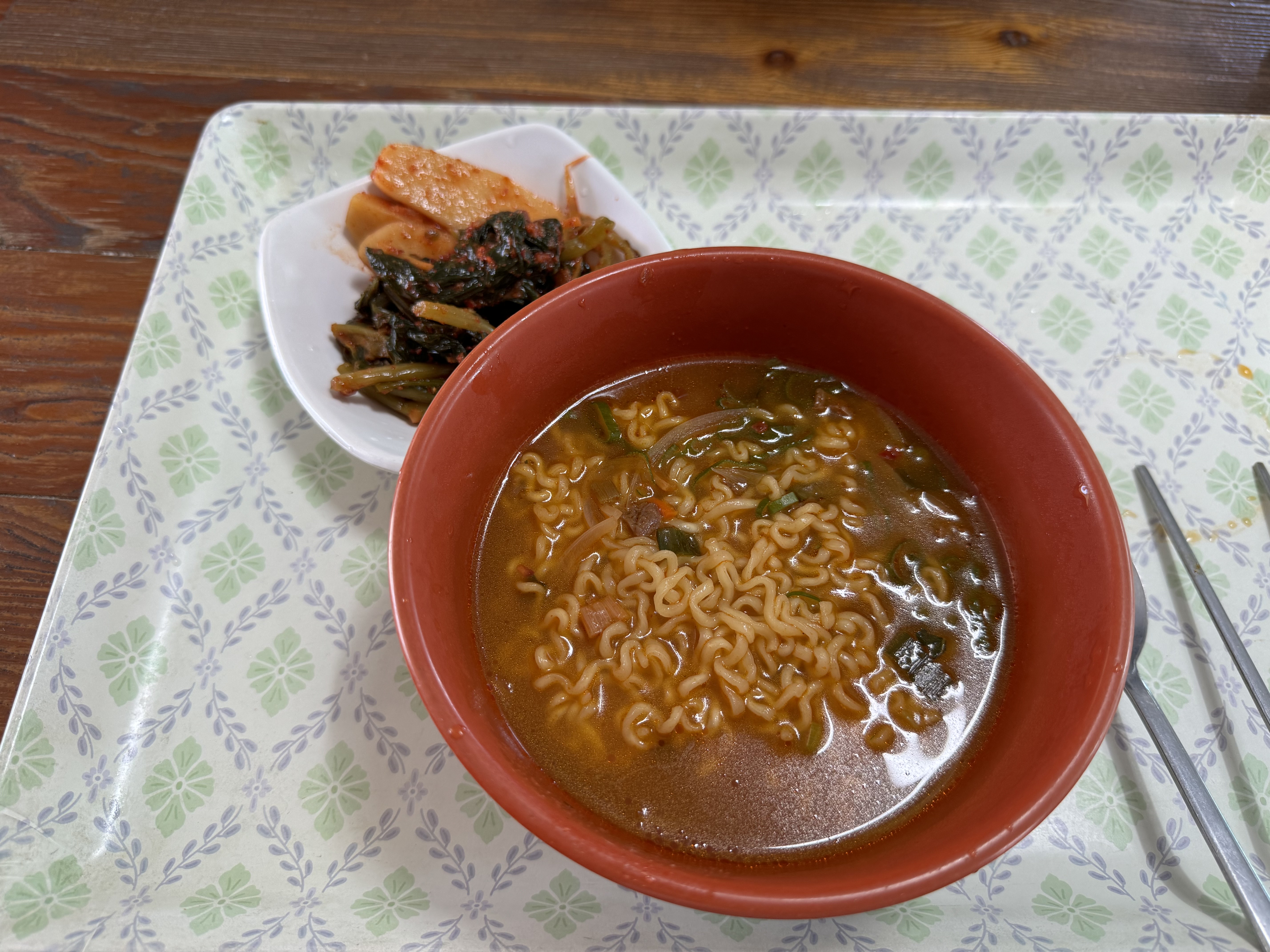 원래는 포카리와 초코파이만 먹고 가려고 했는데 옆 테이블에 계신 분들이 라면을 먹는 걸 보고 있으니 너무나도 라면이 먹고 싶어져서 우리도 라면을 먹고 가기로 했다. 약간 국물을 적게 끓여달라고 말씀드렸는데 이 날 나루터 쉼터에서 먹은 초코파이와 라면이 내 인생 최고의 초코파이와 라면이 됐다.