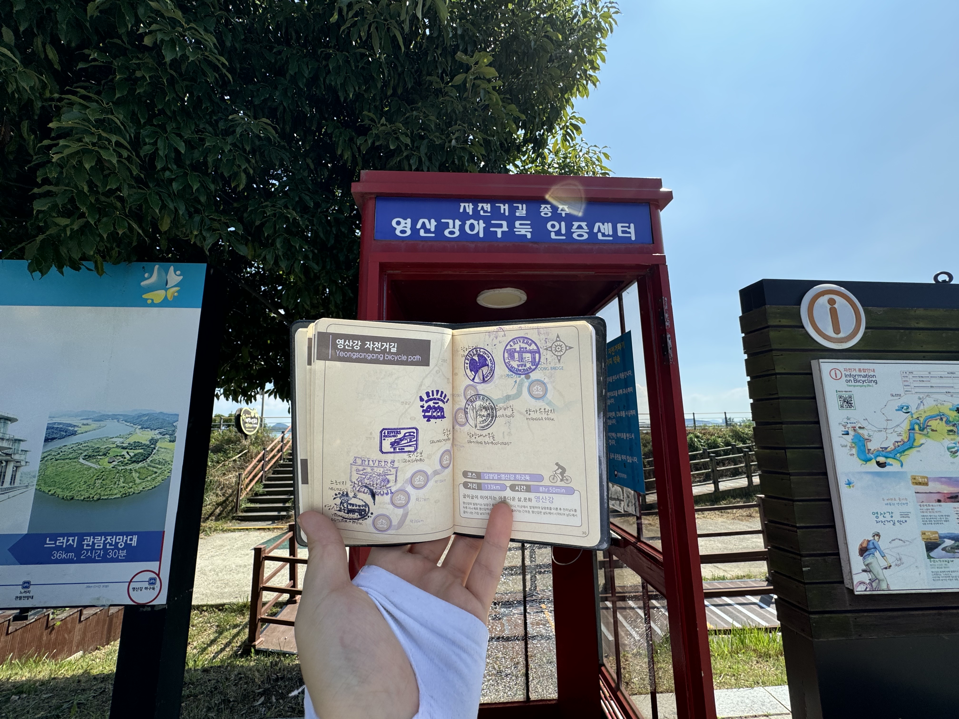 영산강하굿둑 인증센터는 이 지루한 길을 달리다보면 오른쪽에 위치해있는데 간판을 잘 보고 가야지 힘들다고 바닥만 보면 그냥 지나치기 딱 좋은 곳에 위치해있다. 영산강하굿둑 인증센터에서 인증을 마치고 목포 터미널로 향하는 걸로 영산강 종주는 끝이 났다. 끝!