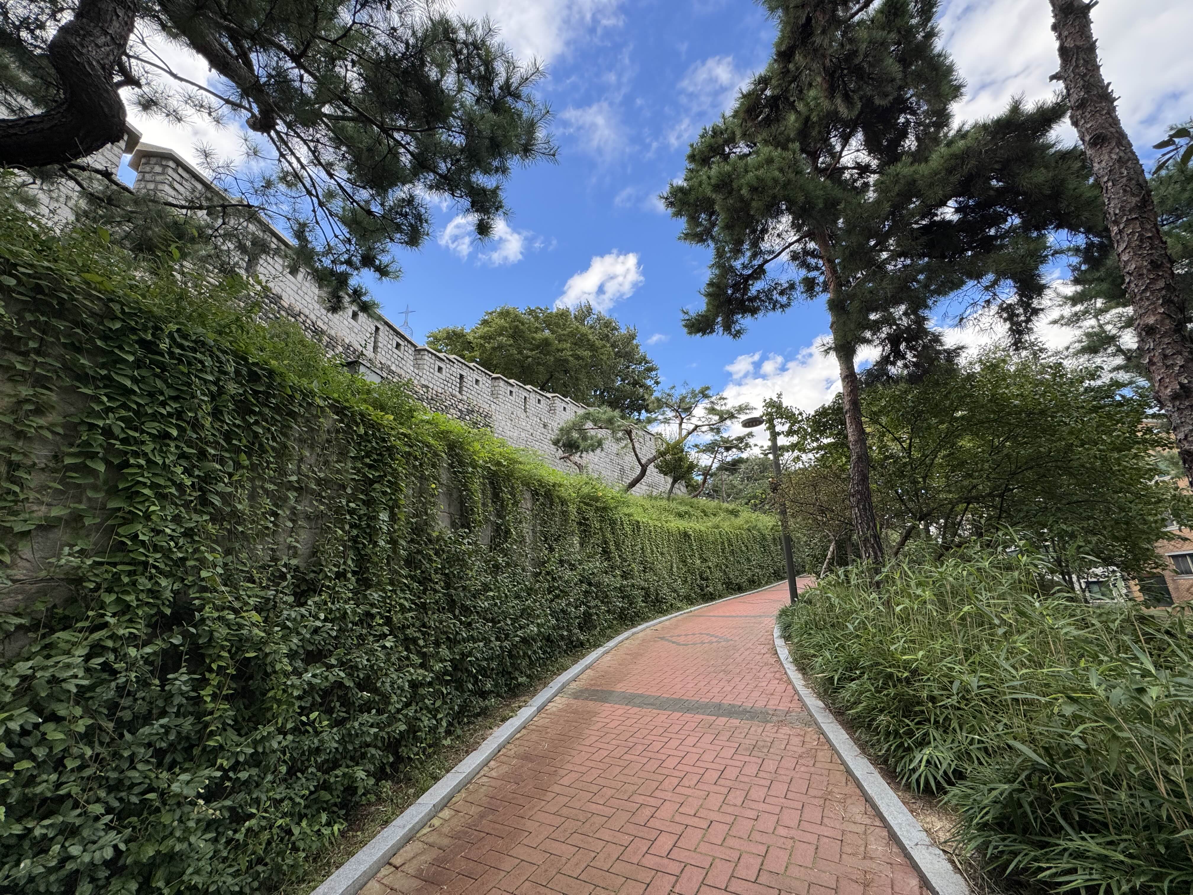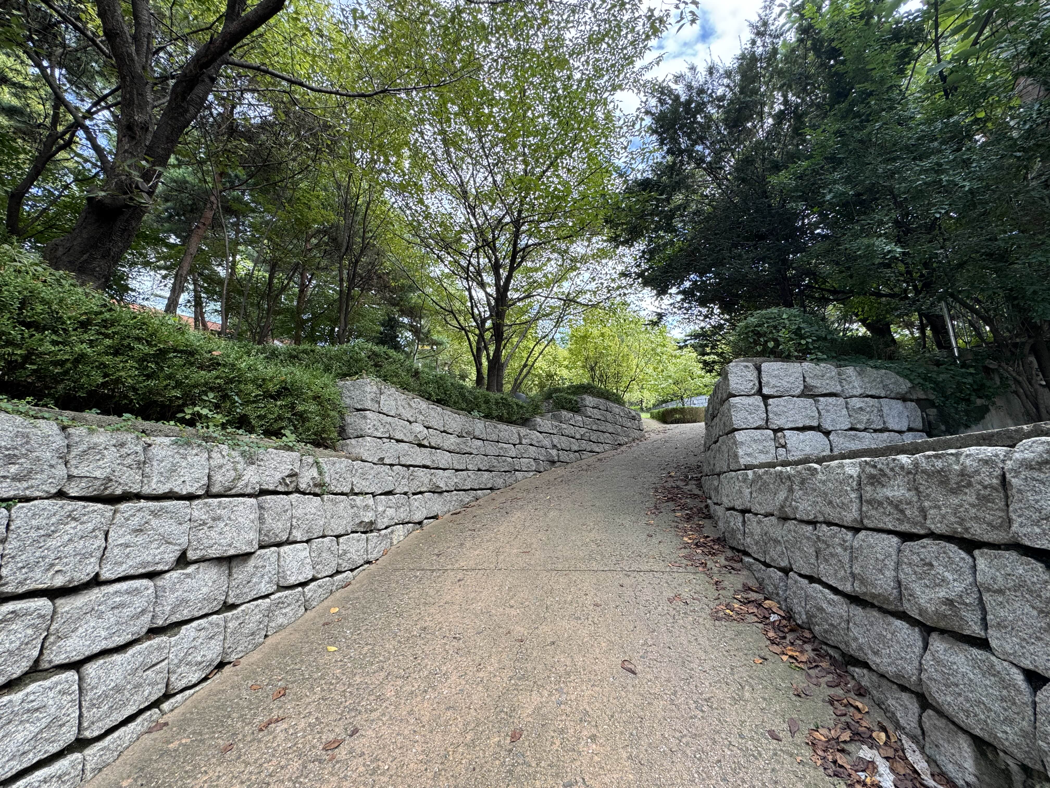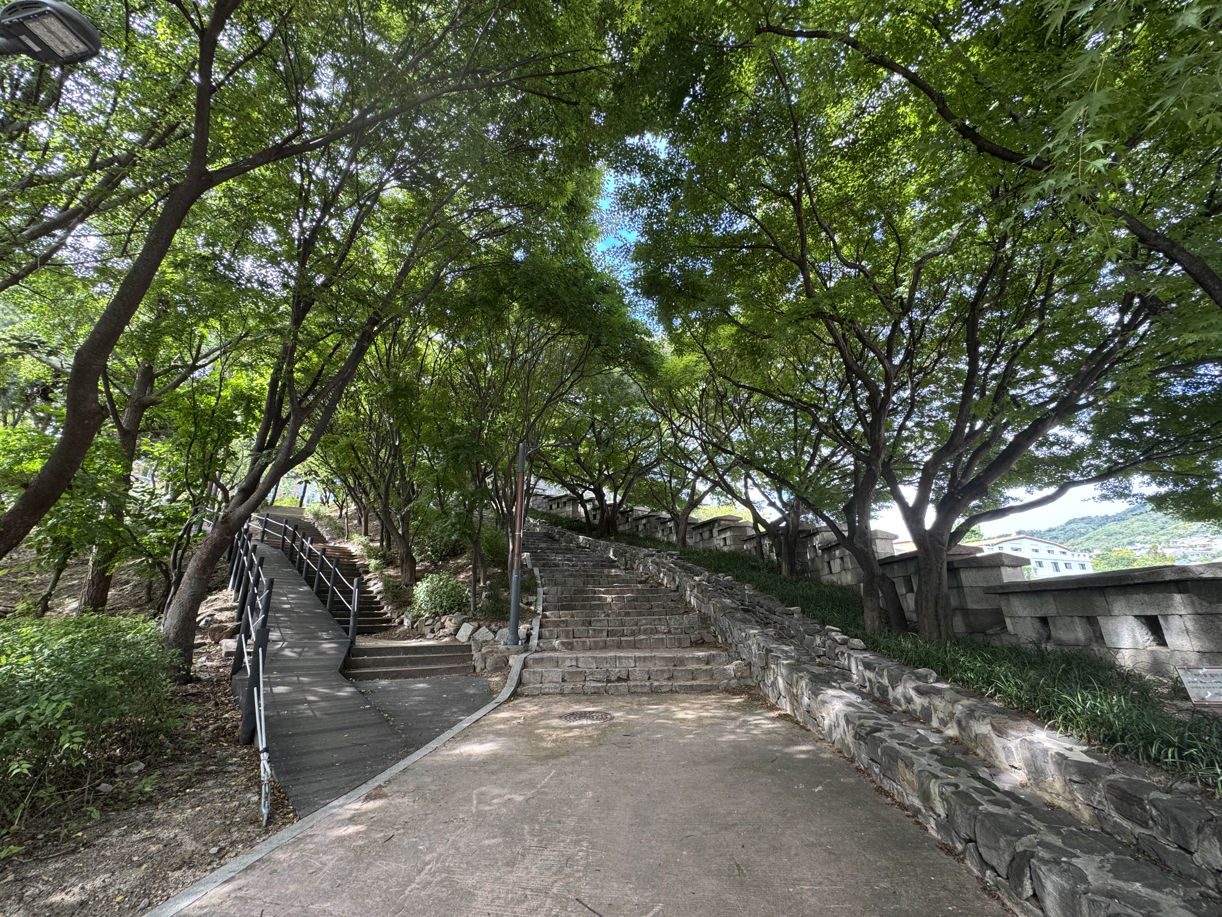 우회길은 정규 코스보다는 길이 완만해서 걷기에 좋았다. 나는 약간 눈이 이상해서 계단을 내려가다보면 너무 어질어질한데 우회길은 이렇게 완만한 내리막길로 되어 있으니 걷기에 너무 편해서 계속해서 우회길이 정규 코스였으면 좋겠다는 생각도 들었다. 그리고 우회길로 내려가는 길에 카페, 식당, 편의점 등이 있으니 간단하게 보급도 할 수 있어서 혜화문에서 굳이 챙기지 않았어도 됐겠다는 생각도 들었다.