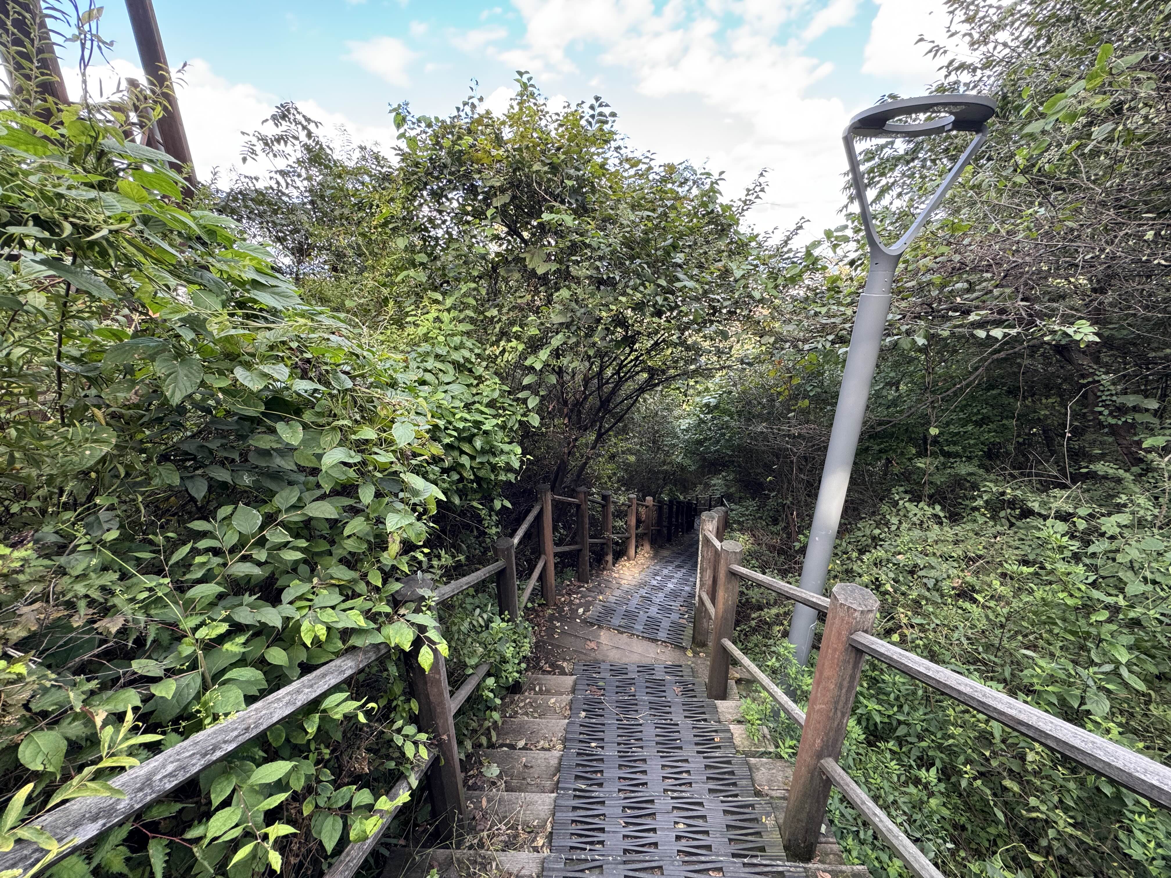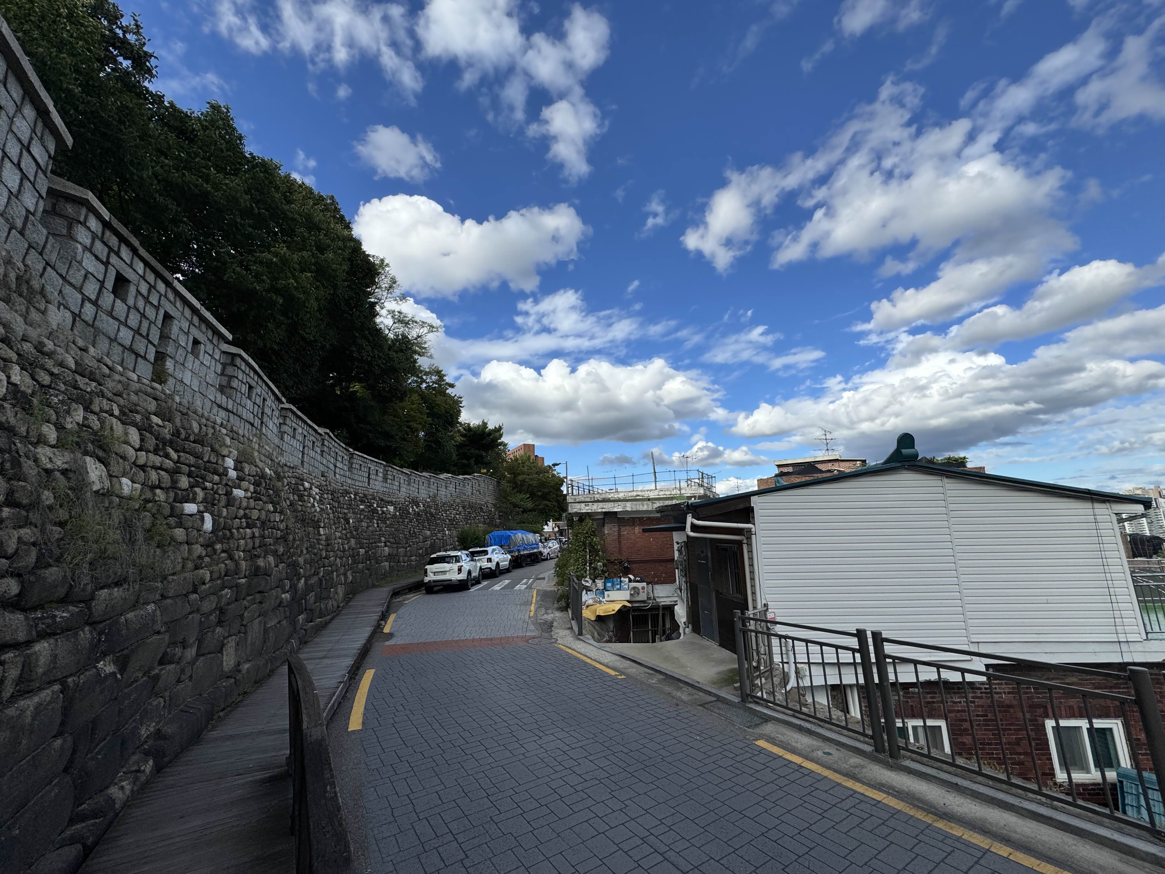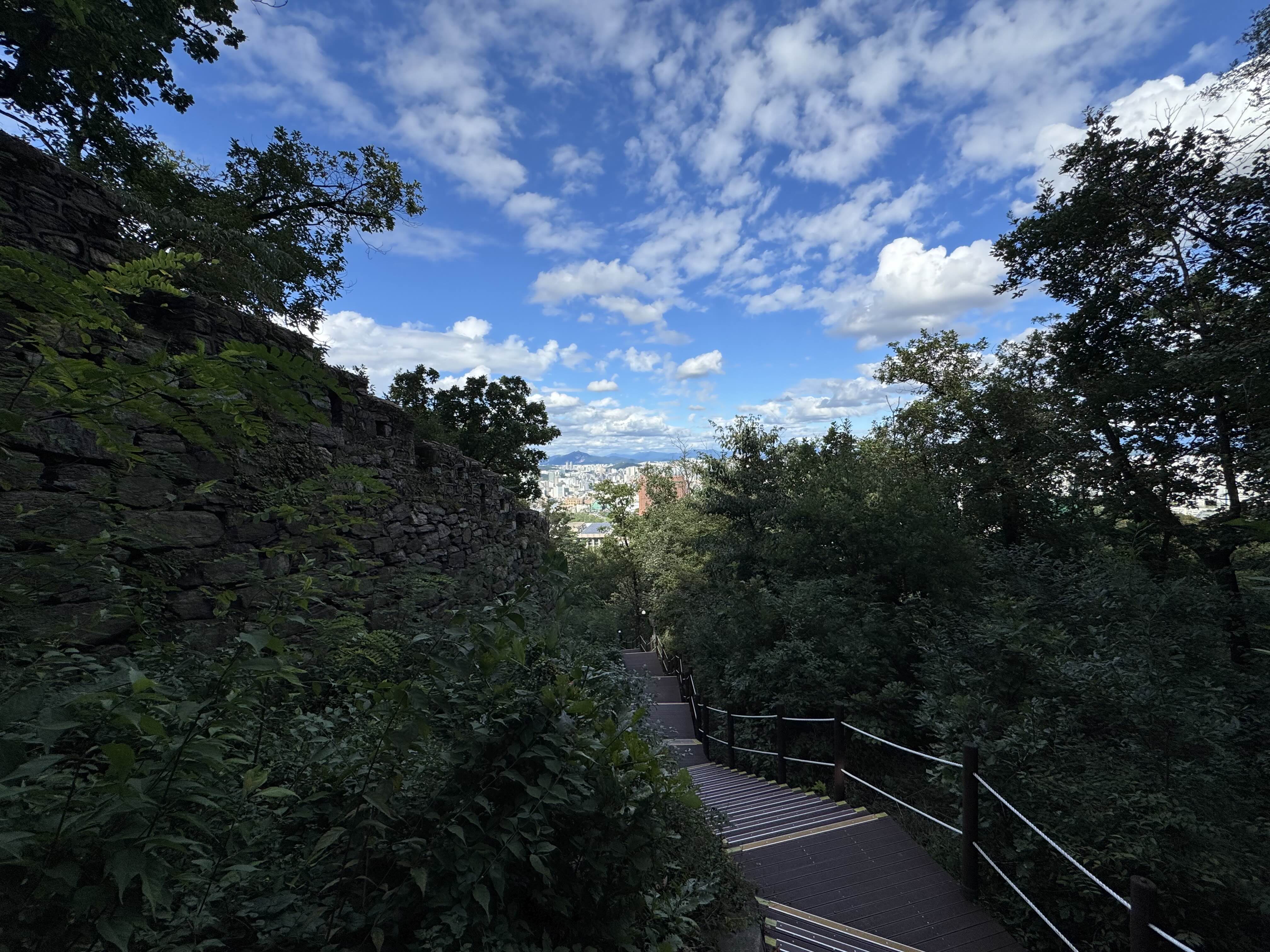 우회길은 정규 코스보다는 길이 완만해서 걷기에 좋았다. 나는 약간 눈이 이상해서 계단을 내려가다보면 너무 어질어질한데 우회길은 이렇게 완만한 내리막길로 되어 있으니 걷기에 너무 편해서 계속해서 우회길이 정규 코스였으면 좋겠다는 생각도 들었다. 그리고 우회길로 내려가는 길에 카페, 식당, 편의점 등이 있으니 간단하게 보급도 할 수 있어서 혜화문에서 굳이 챙기지 않았어도 됐겠다는 생각도 들었다.