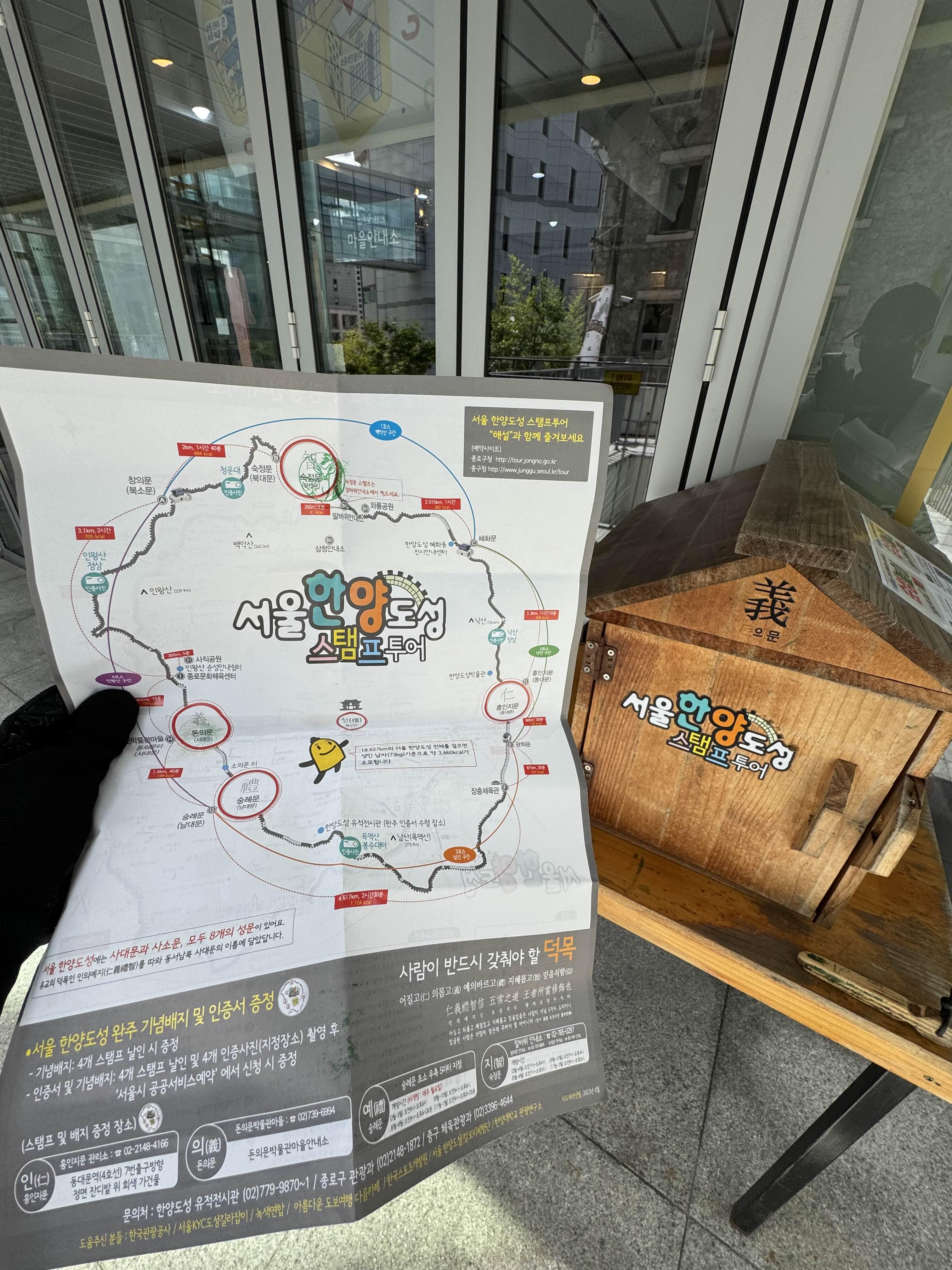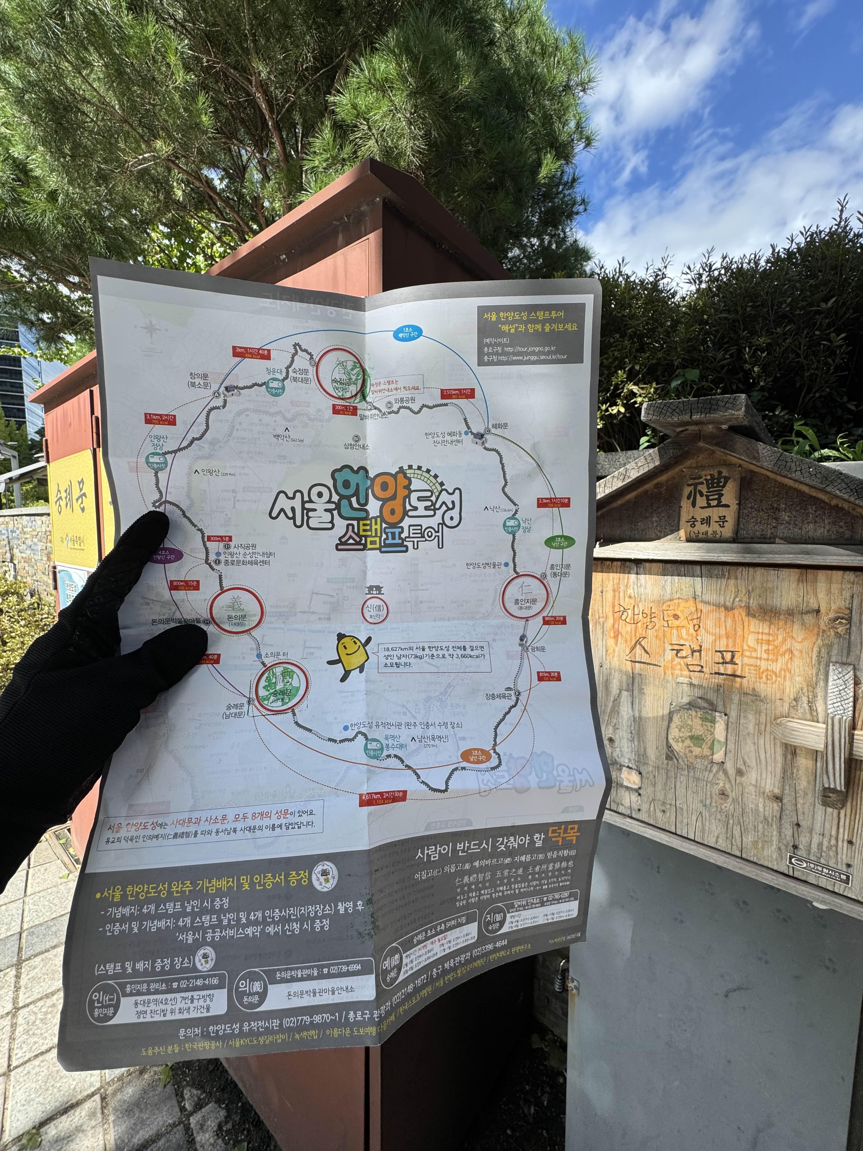 이제 두 번 와봤다고 전혀 헤매지 않고 돈의문 스탬프를 찍는 곳까지 바로 이동할 수 있었다. 스탬프에 인주가 별로 없는지 스탬프가 깔끔하게 찍히지 않아서 좀 그렇긴 했지만 어쨌든 도장은 찍었으니 바로 남산 구간으로 출발했다.