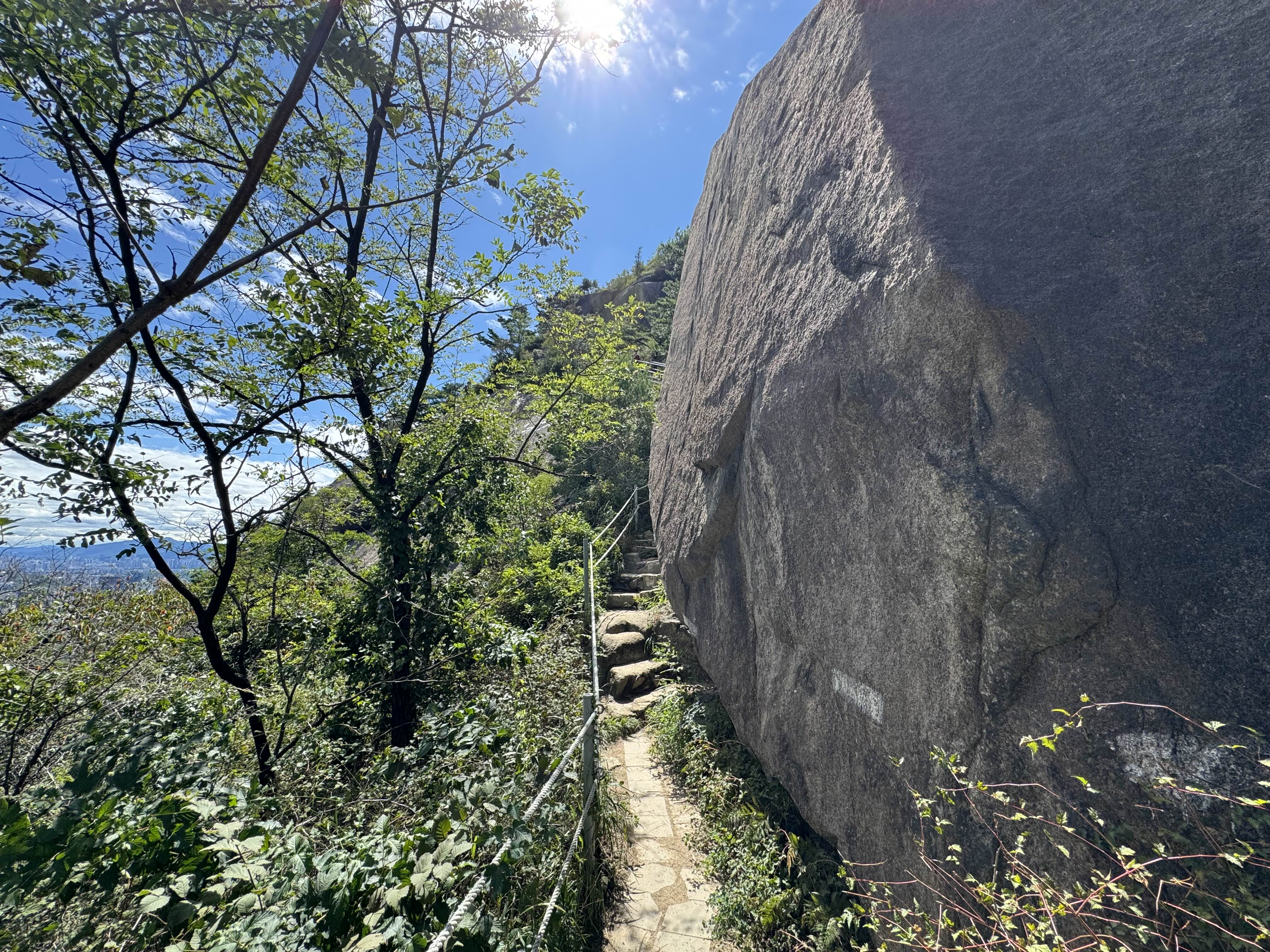예전 같았으면 백악산 구간 초입의 계단을 몇 개만 올라가도 벌써 헉헉 거리기 시작했었는데 뭔가 발걸음이 가벼운 게 평소보다 빠른 페이스로 올라가고 있다는 게 느껴졌다. 역시 달리기는 모든 운동의 기초라는 말이 괜히 나온 게 아니다. 달리기가 아니라 걷기인가...?