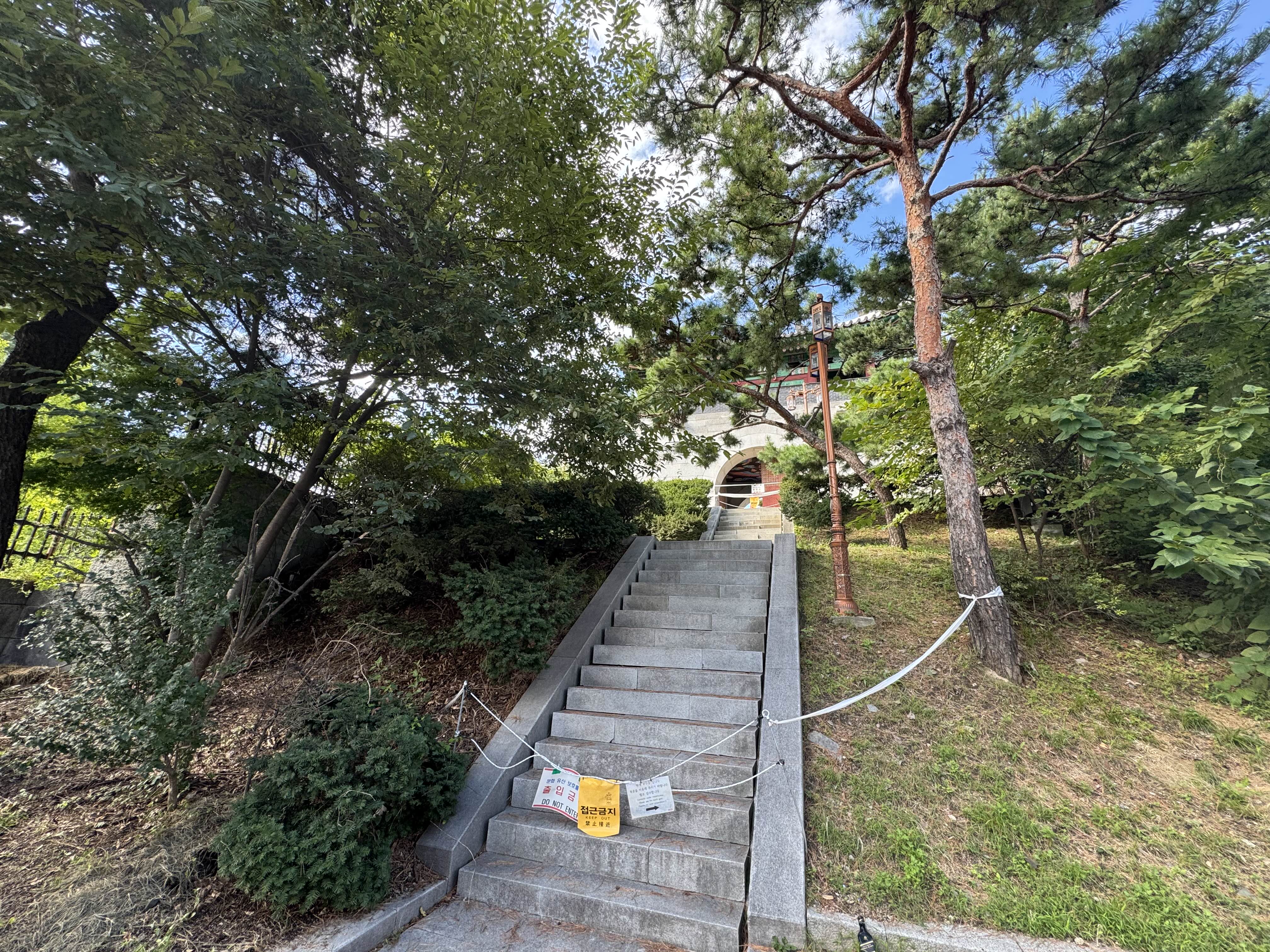 청운대 비석 바로 전에 있는 화장실에 도착하기 전의 장미 터널 같은 곳에 빙 돌아서 가라는 안내 문구도 있었는데 그것도 그냥 싹 다 무시하고 어쨌든 청운대 비석까지는 그냥 올라가면 된다. 나도 돌아서 가야 하나 하다가 일단 청운대 비석까지 올라가보자 싶어서 청운대까지 올라왔더니 알아서 우회길로 가도록 되어 있었다.