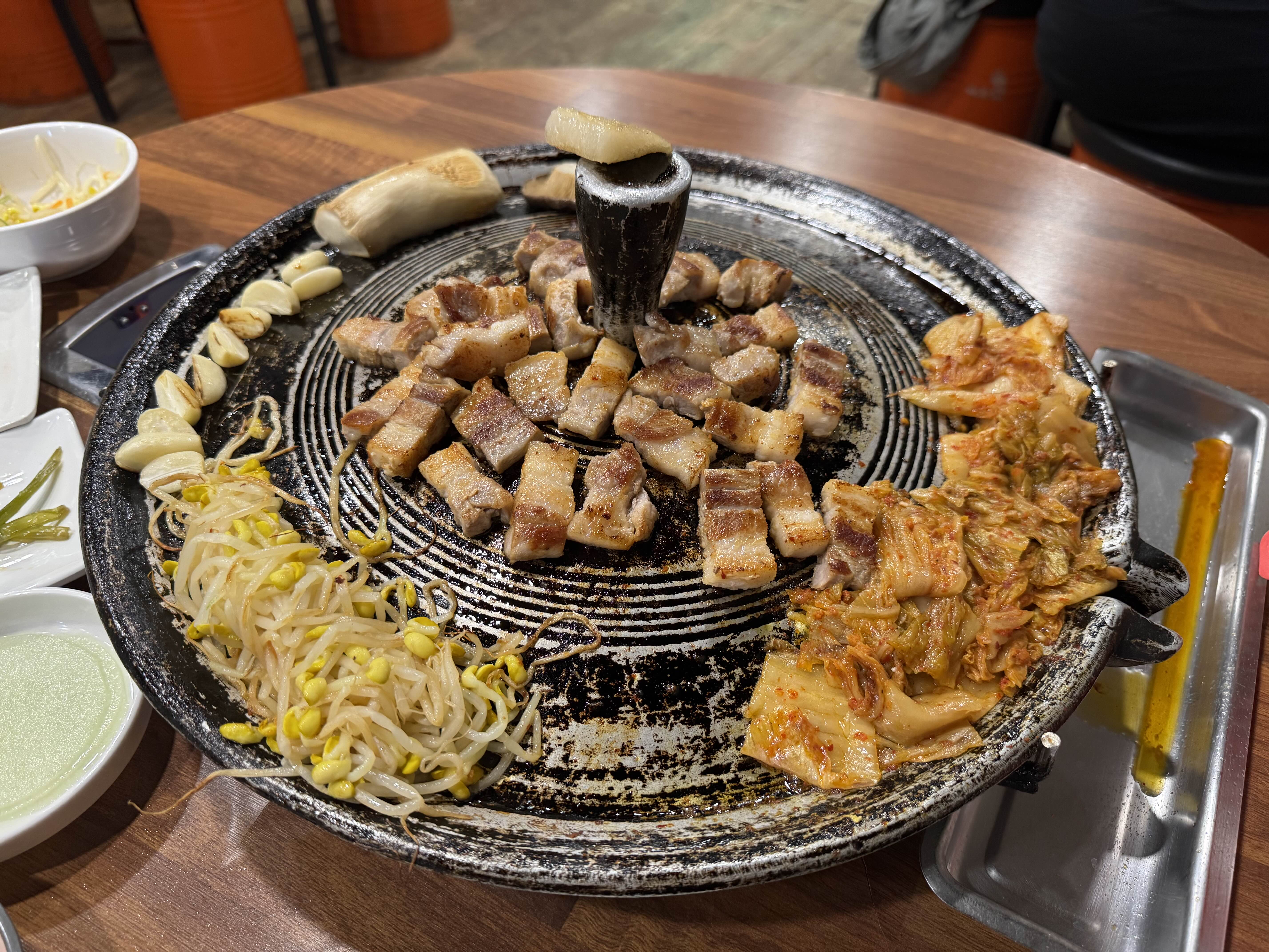그리고 나는 당당히 삼겹살을 2인분을 주문했는데 알고보니 3인분부터 가능이었다. 그러면 3인분을 먹어도 크게 상관이 없어서 3인분을 주문하려 했더니 2인분만 드시라고 해서 감사하게 맛난 삼겹살을 먹고 나올 수 있었다. 혼자 왔지만 앞에 계시던 여자분 두분이 굉장히 열띈 토론을 하고 계셔서 귀도 심심하지 않았다.