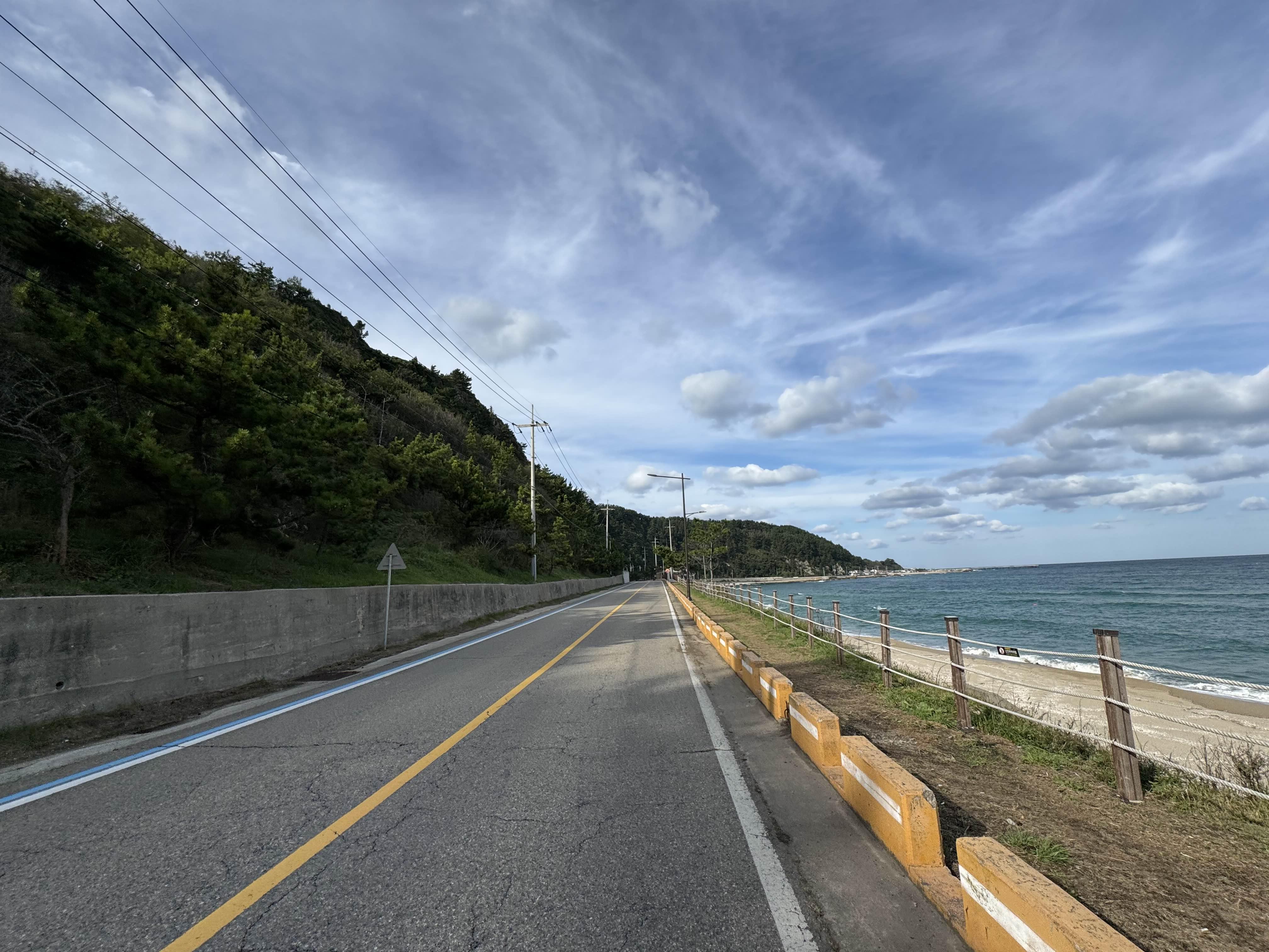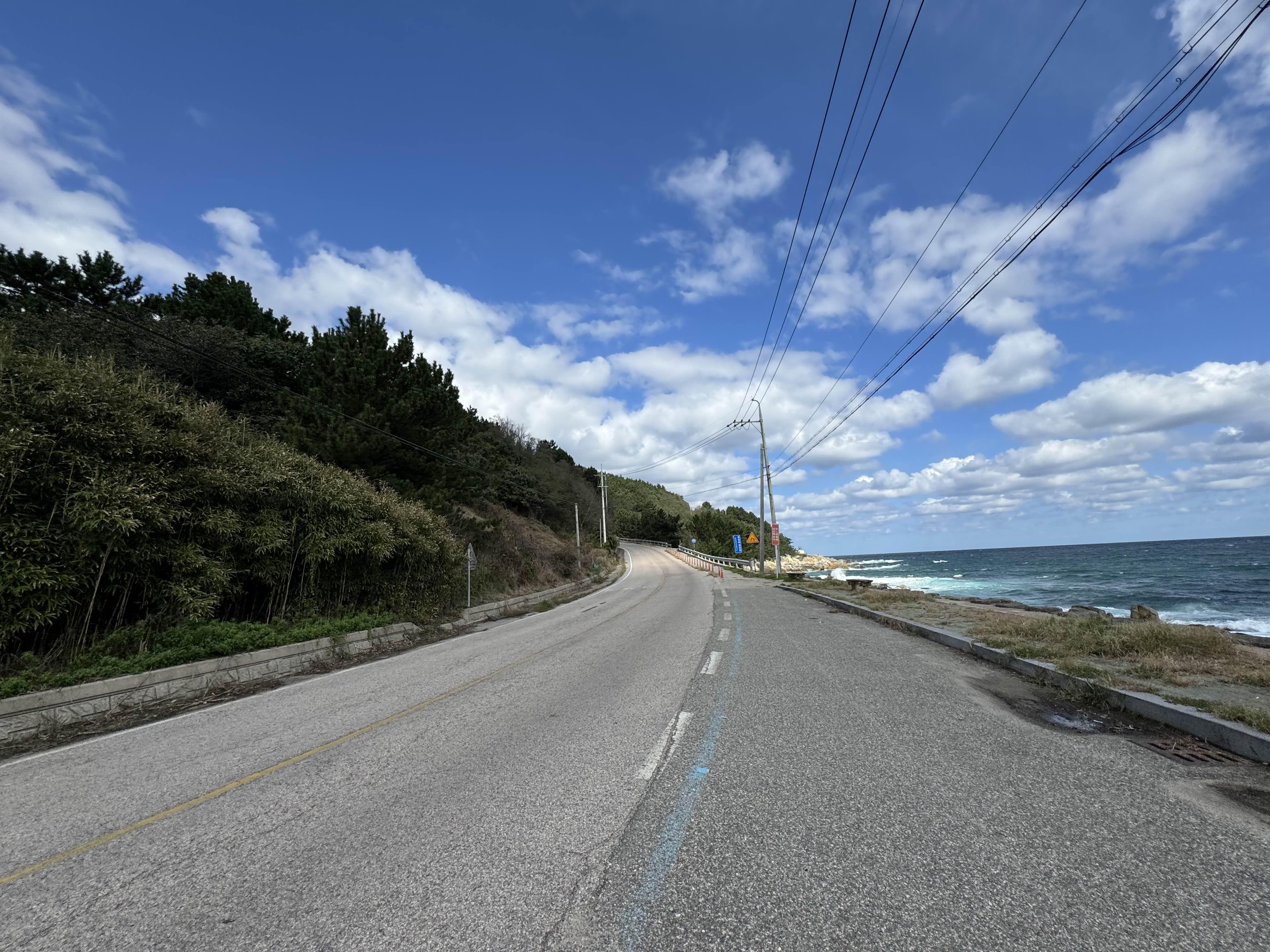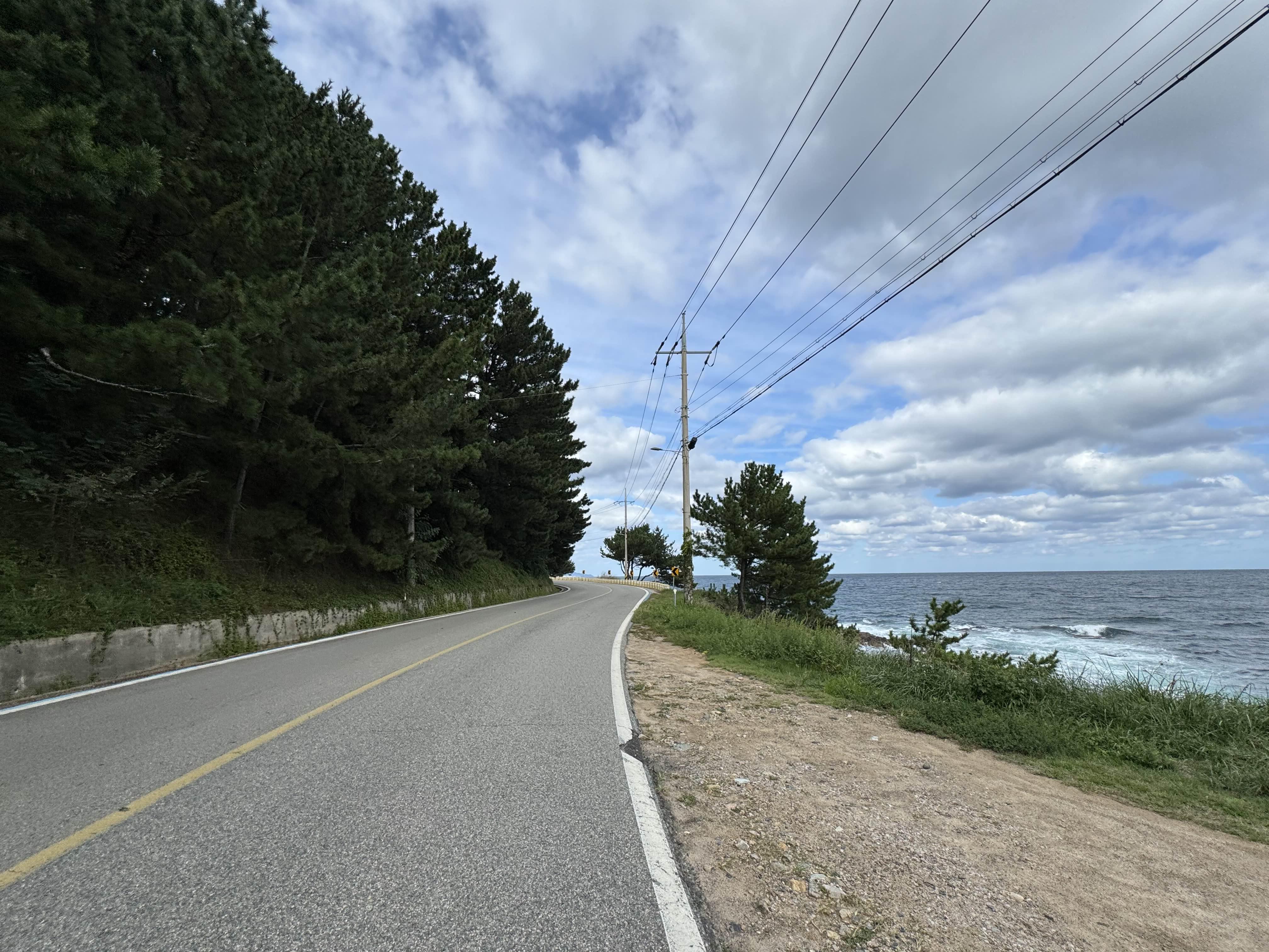 생각보다는 금방 바닷가에 도착할 수 있었다. 나는 왜 이 쪽이 어마무시한 업힐이라고 생각하고 있었는지 모르겠지만 예전에 로드를 타던 때보다 쉽게 온 듯한 기분이었는데 뭔가 영덕터미널에서 사람들이 많이 내렸는데 이 곳엔 나 혼자 있으니 날짜를 잘못 잡았나 하는 생각도 들었다.