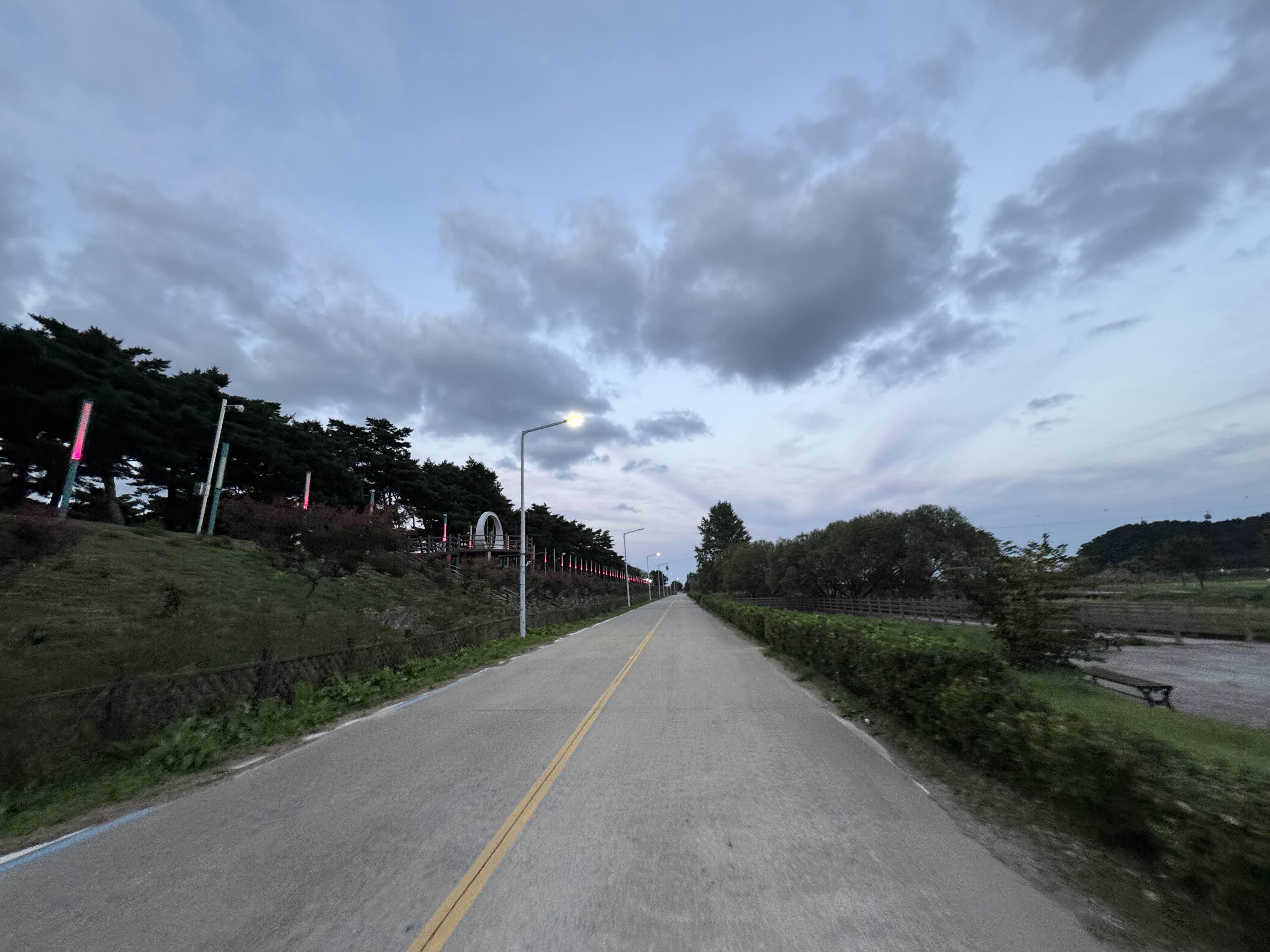 종주를 다니면서는 사실 별다른 이벤트가 일어나지 않는 게 제일이다. 이렇게까지 아무 일도 없으면 블로그에 쓸 내용이 없어서 좀 그렇기는 한데 그래도 무슨 이벤트가 일어나는 것보다는 아무 일도 일어나지 않는 게 제일이다. 중간중간 바다 구경도 하고 공원이 나오면 사진도 찍고 하면서 그냥 열심히 달렸다. 달리는 것 외에는 할 일이 없었다. 커피를 한 잔 마시고 싶었지만 일단 동서울터미널 행 막차가 목표였기 때문에 최대한 쓸데없는 시간은 줄이기로 했다.