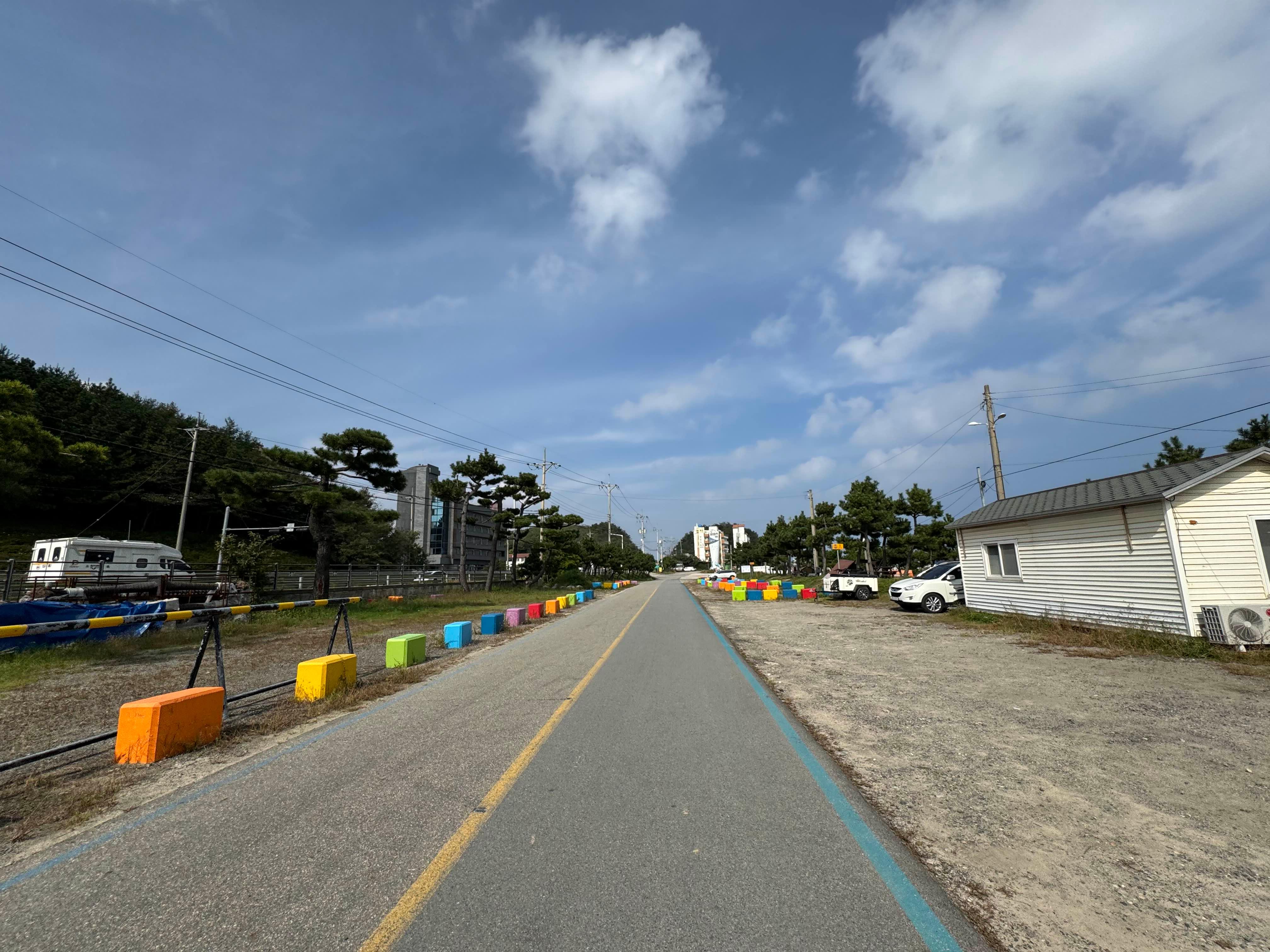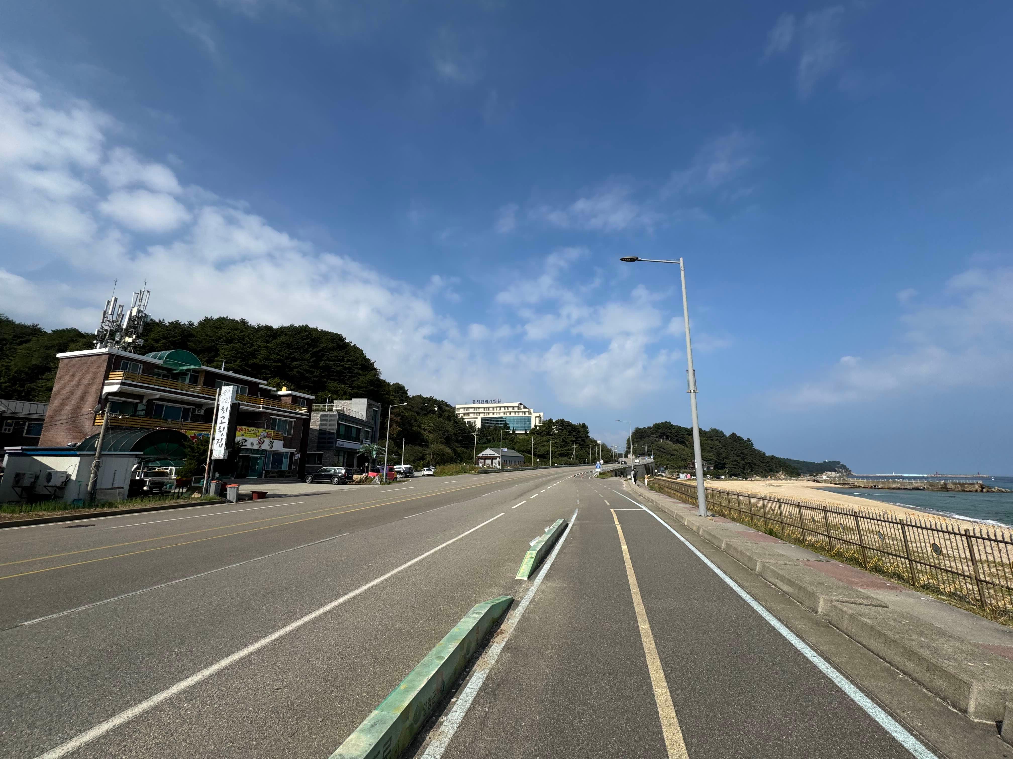 아마 동해안 종주 중에 이 쪽 구간이 가장 길이 깔끔하고 포장이 잘 되어 있는 구간이 아닐까 싶다. 내 브롬톤으로도 바닥에 딱 달라붙어서 쑥쑥 나아가는 기분을 느끼고 있자니 어느덧 다음 보급처에 도착할 수 있었다. 글을 쓰는 김에 찾아보니 조산해변 이라는 곳인 것 같다.