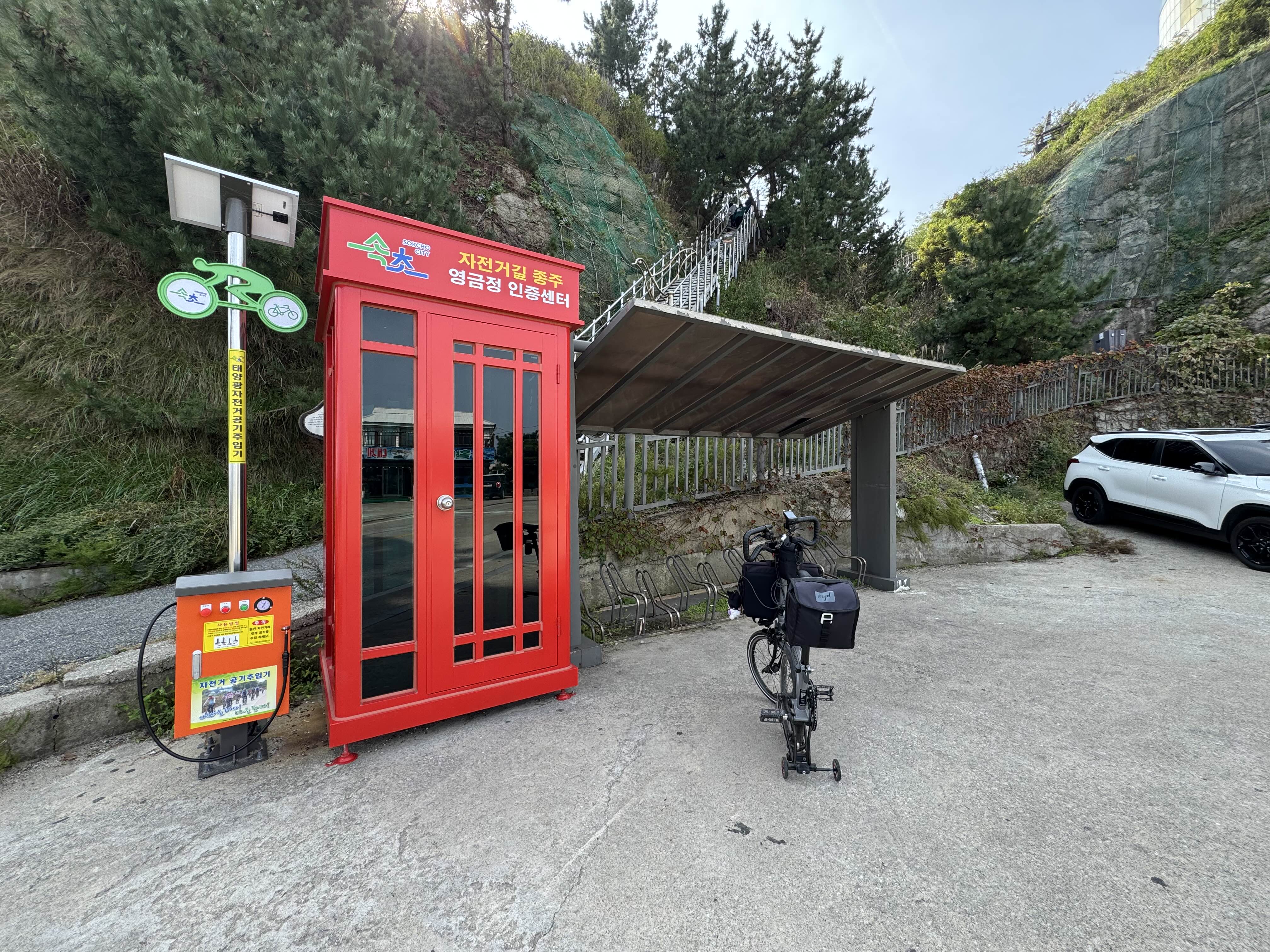 인증센터 부스 옆의 휴게소에서 잠깐 사진도 찍고 에너지바도 먹으면서 체력을 보충하고 다음 인증센터인 영금정 인증센터를 향해 출발했다. 동호해변 인증센터에서는 라이더 분들을 몇몇 만나뵐 수 있었는데 뭔가 데면데면한 느낌이었다.