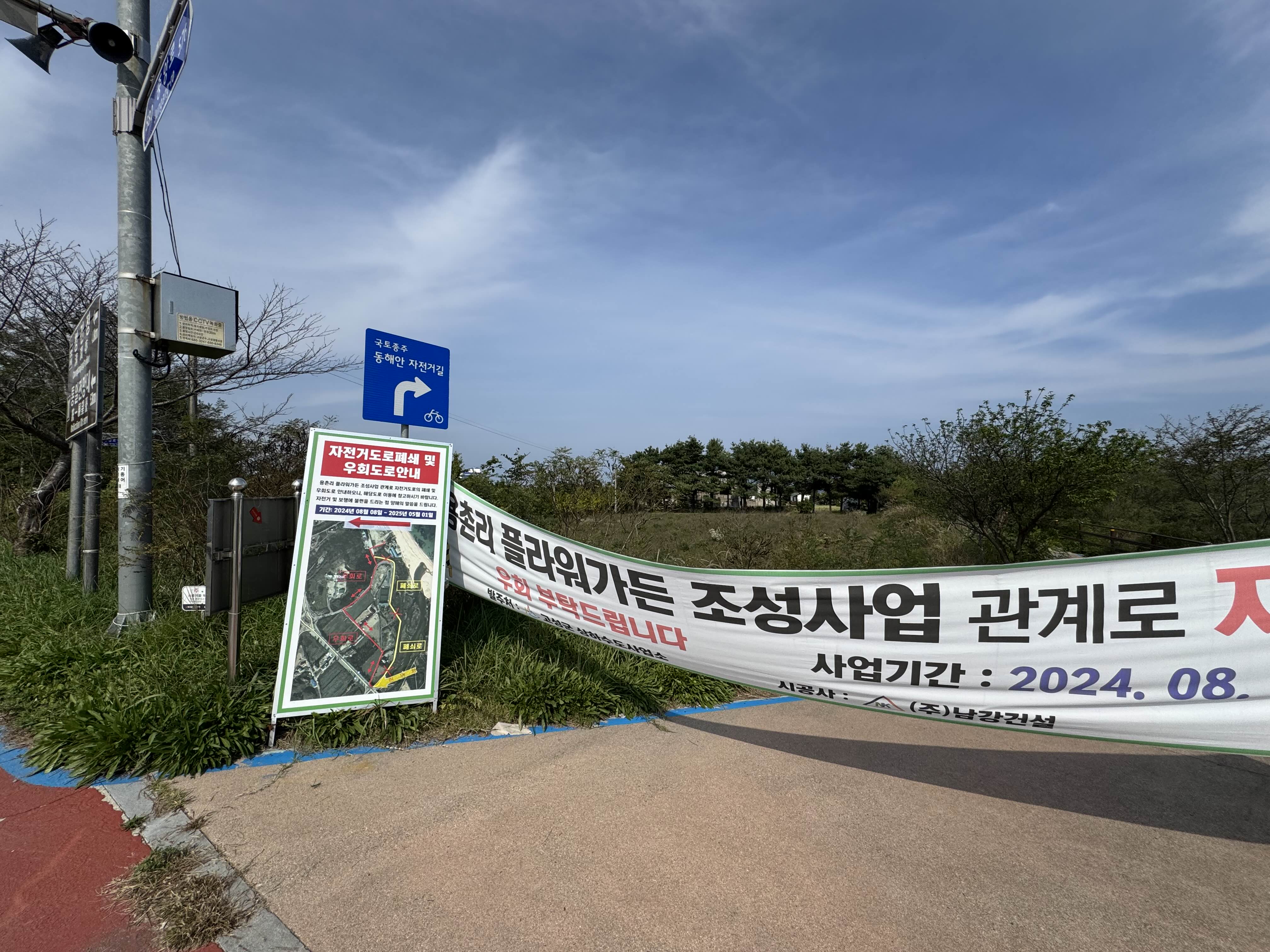 봉포해변 인증센터로 가는 길에 우회 표시가 나와서 많이 돌아가면 어쩌지 하고 걱정 했는데 거리 상 큰 차이 없이 봉포해변 인증센터에 도착할 수 있었다. 근데 확실히 봉포해변 인증센터를 호텔의 초입이 아닌 저 안쪽으로 옮겨놓으니 예전보다는 멀리 돌아가는 듯한 기분이 들었다.