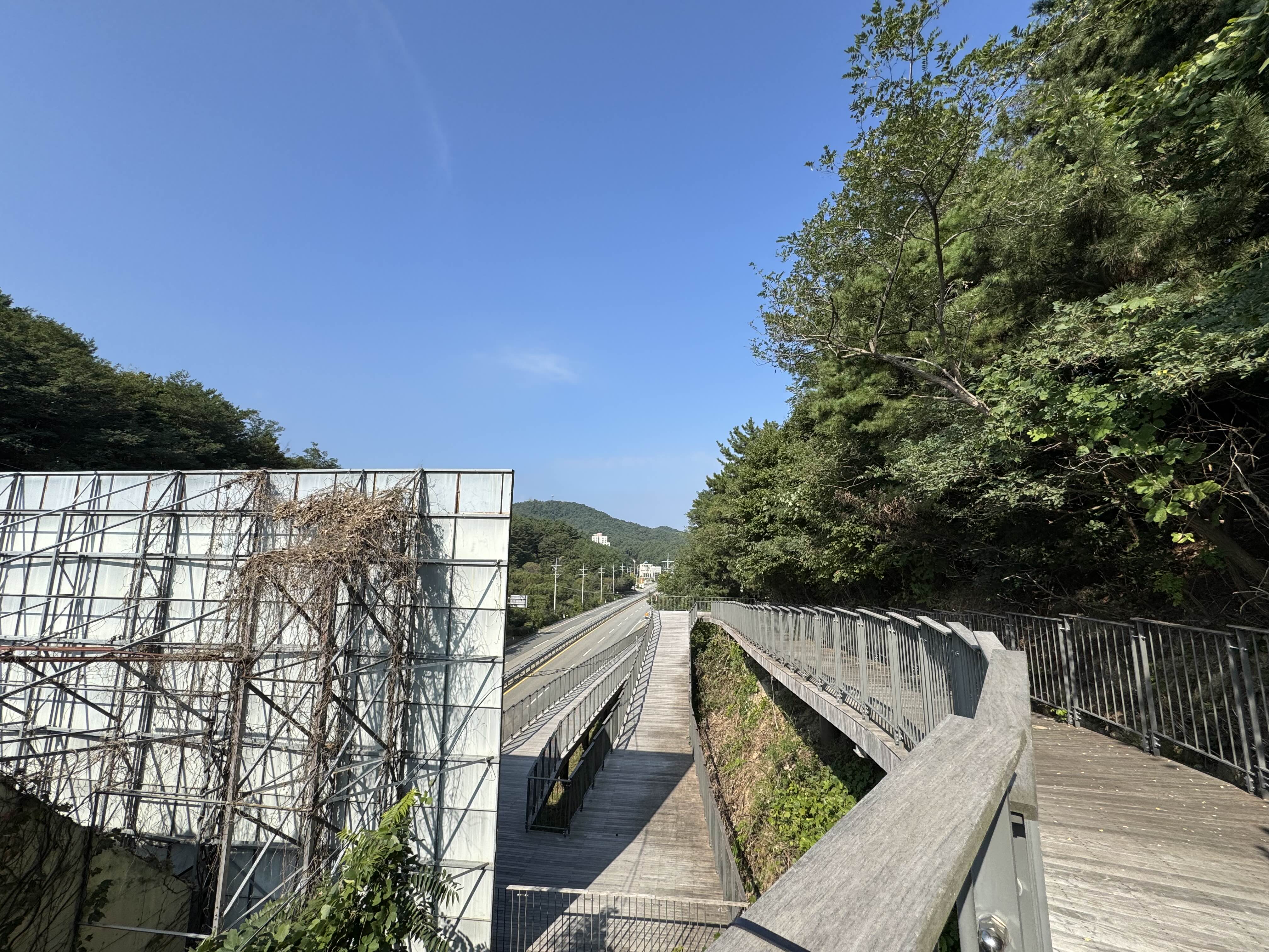 뭐지!! 하고 보니까 이제는 끌바를 하지 않고 갈 수 있도록 데크길이 새로 만들어져있었다. 어쩐지 자전거를 끌고 올라가려는 찰나에 못 보던 데크길이 생겨있어서 설마 저기로 길이 바뀌었나 했는데 설마 거기로 바뀌었을 줄은 꿈에도 몰랐다. 아마 예전 동해안 종주 후기를 보시는 분들은 무조건 끌바를 해야 하는 구간이라는 내용을 볼텐데 이제는 데크길로 가면 된다.