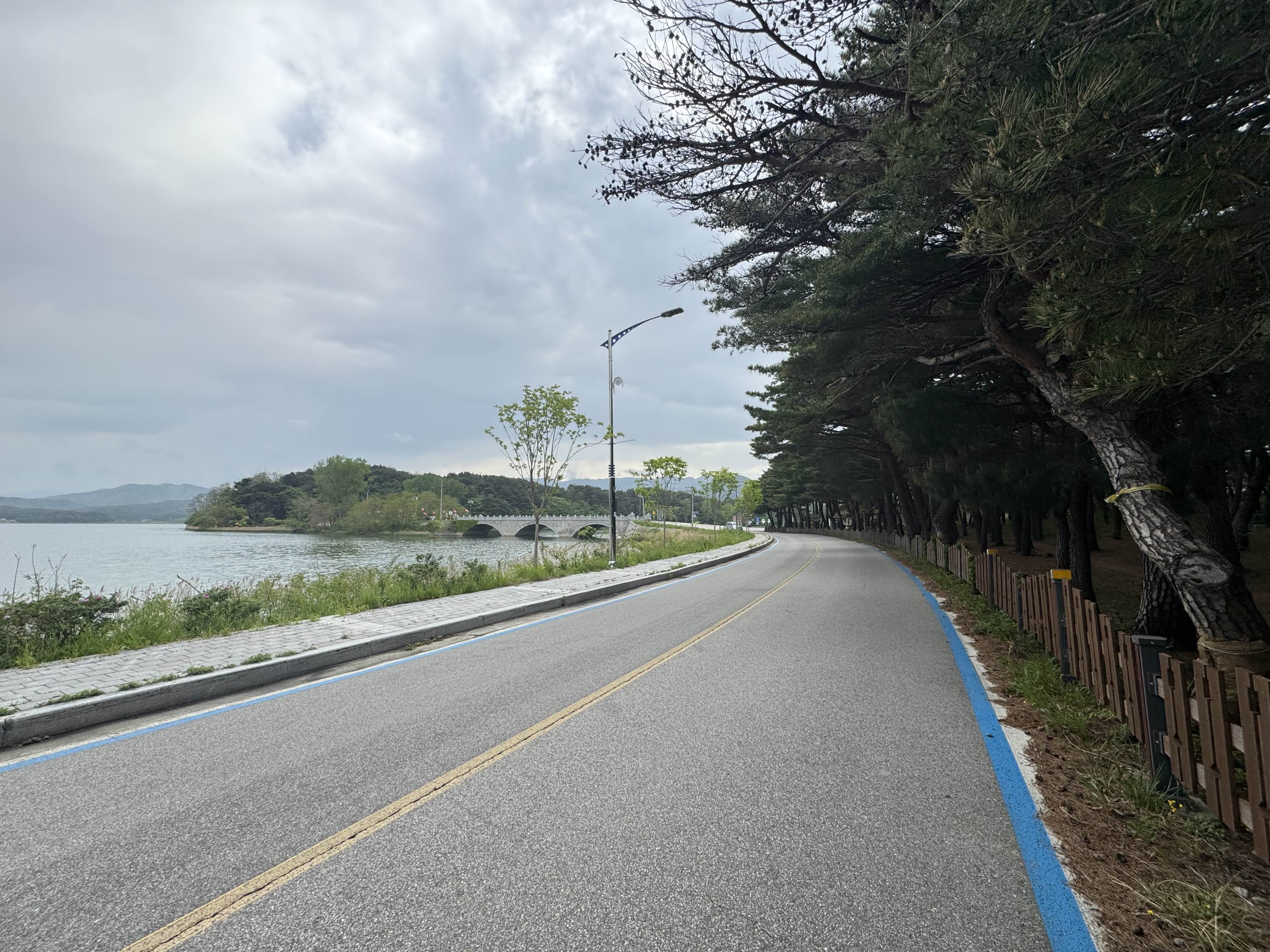 송지호를 지나면서 이번에는 한 바퀴 둘러볼까 싶었지만 뭔가 날이 쌀쌀해서 이번에도 그냥 지나쳤는데... 송지호를 지나면서부터 드디어 비가 쏟아지기 시작했다. 그래도 맞고 달릴만 한 정도로 비가 와서 우선은 맞으면서 달리기로 했다.