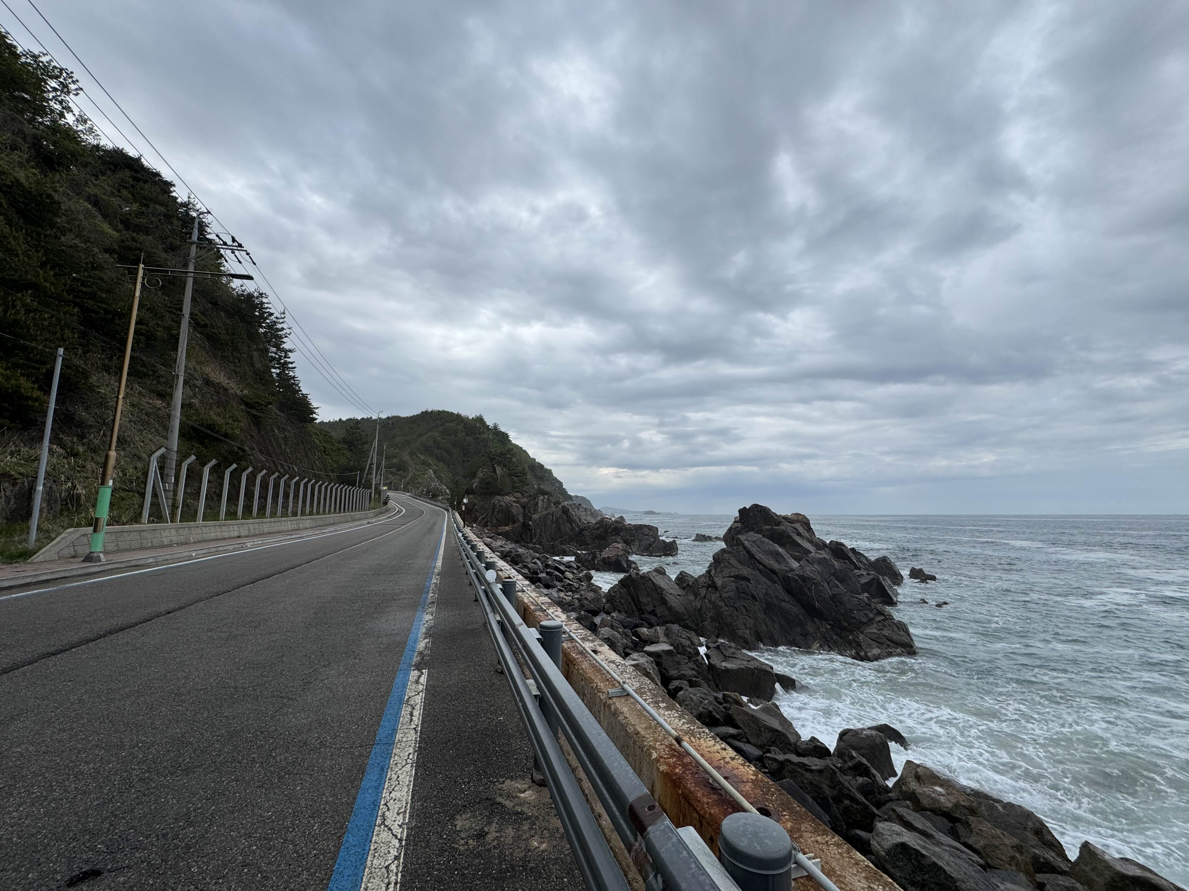 달리다 보니 저번 동해안 종주 때 낙차한 곳이 나왔다. 과연 보수를 했을까 안 했을까 의문이었는데 우문이었다. 전혀 보수가 되어 있지 않았다. 이번에 달리면서 보니 고성 구간이 전체적으로 함정이 많아서 나 말고도 낙차하는 사람이 많을 것 같았다. 특히 낮이면 몰라도 밤에 이 곳을 달린다면... 어휴...