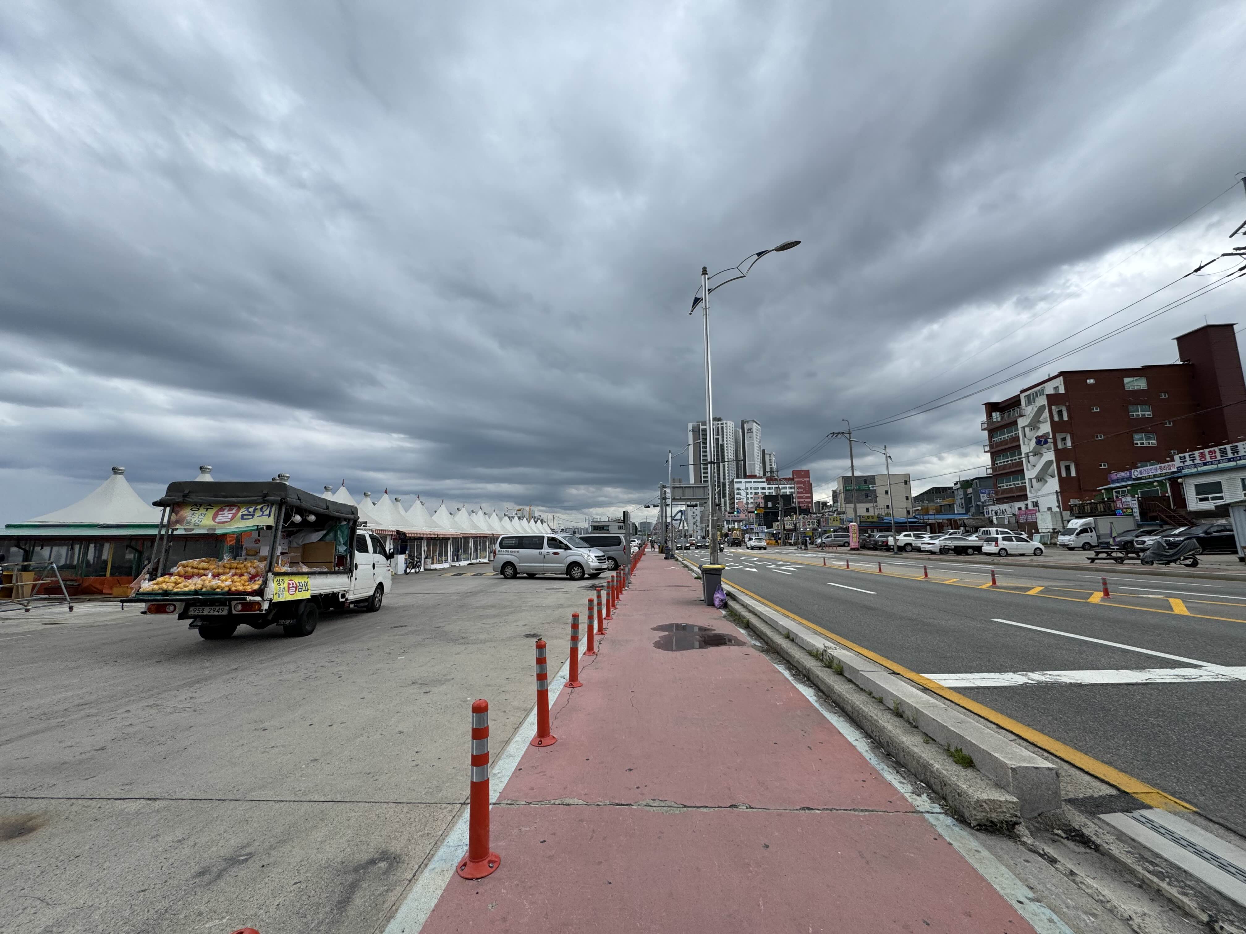 원래는 자전거 앞에 고프로를 달고 다니는데 이 때부터 고프로를 떼어놓고 달리기 시작했다. 내가 세상에서 제일 믿지 않는 게 사랑이라는 단어와 방수라는 단어라서 전자기기는 비가 오면 무조건 젖지 않게 가방에 넣어두어야 한다. 방수가 된다고 백날 자랑해봤자 침수가 되면 고객님 과실이다.